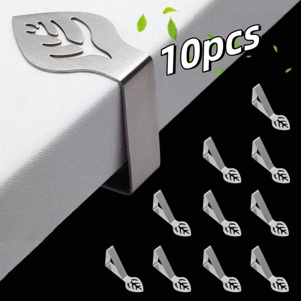 Table Cloth Clips for Outside Inside Table 10 Pack, Leaf Shape Picnic Tablecloth Holder Clip Large Stainless Steel Decorative Cover Clamp for Heavy Duty Party Wedding Restaurant Camping Essential