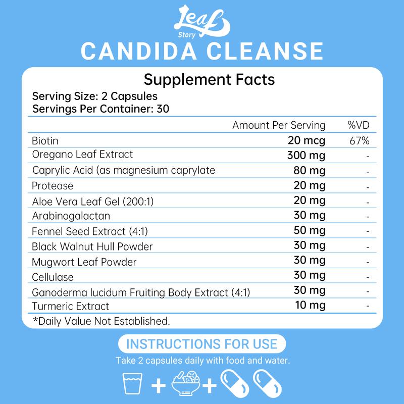 ·Candida Balance Detox: Formulated with blended natural ingredients, LeafStory Candida Balance Supplement is designed to support a healthy balance of intestinal flora and maintain digestive wellness, contributing to overall gut health.