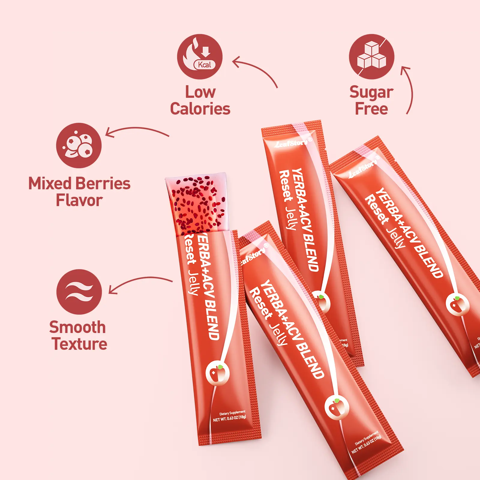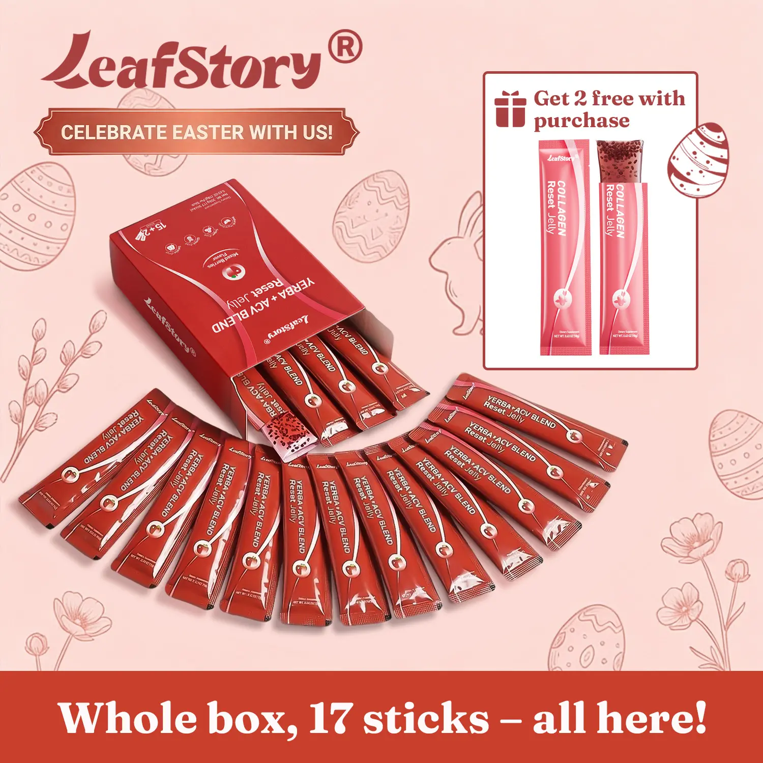 Discover the LeafStory Yerba + ACV Blend Reset Jelly. It supports digestion, Gut Health, Metabolism, and Focus. Each pack contains 7/17 sticks, ensuring you have enough for your journey. This sugar-free, gluten-free, and non-GMO product is gelatin-free, making it a versatile choice. Perfect for those looking to enhance their health naturally.