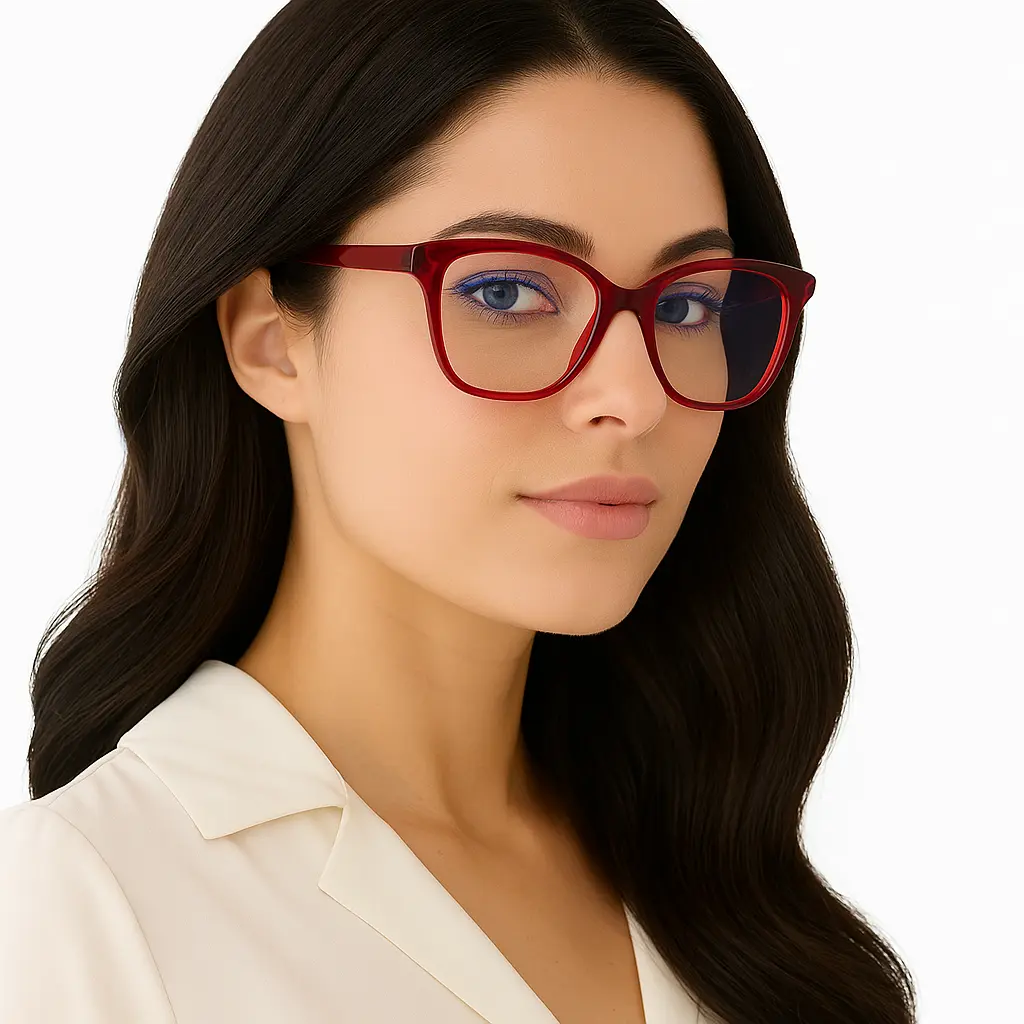 Look refined and elegant with our Leah readers. These stylish specs feature square lenses that slightly taper towards the bottom. Perfect for women seeking both style and functionality in their reading glasses. The slightly cat eye frame adds a touch of elegance to your look.