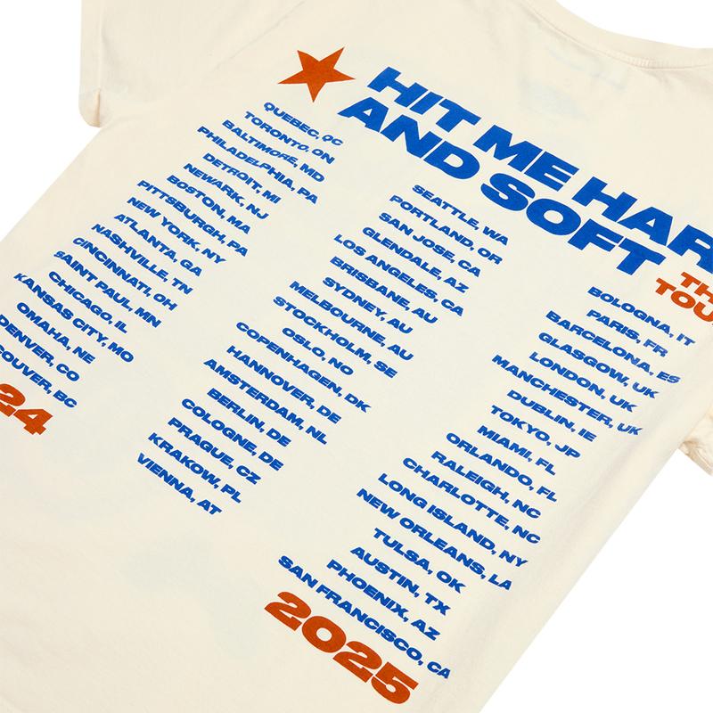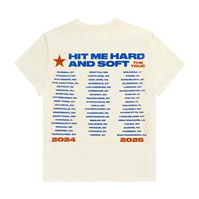 White T-Shirt Featuring Tour Dates and Graphic from the “HIT ME HARD AND SOFT: THE TOUR.”