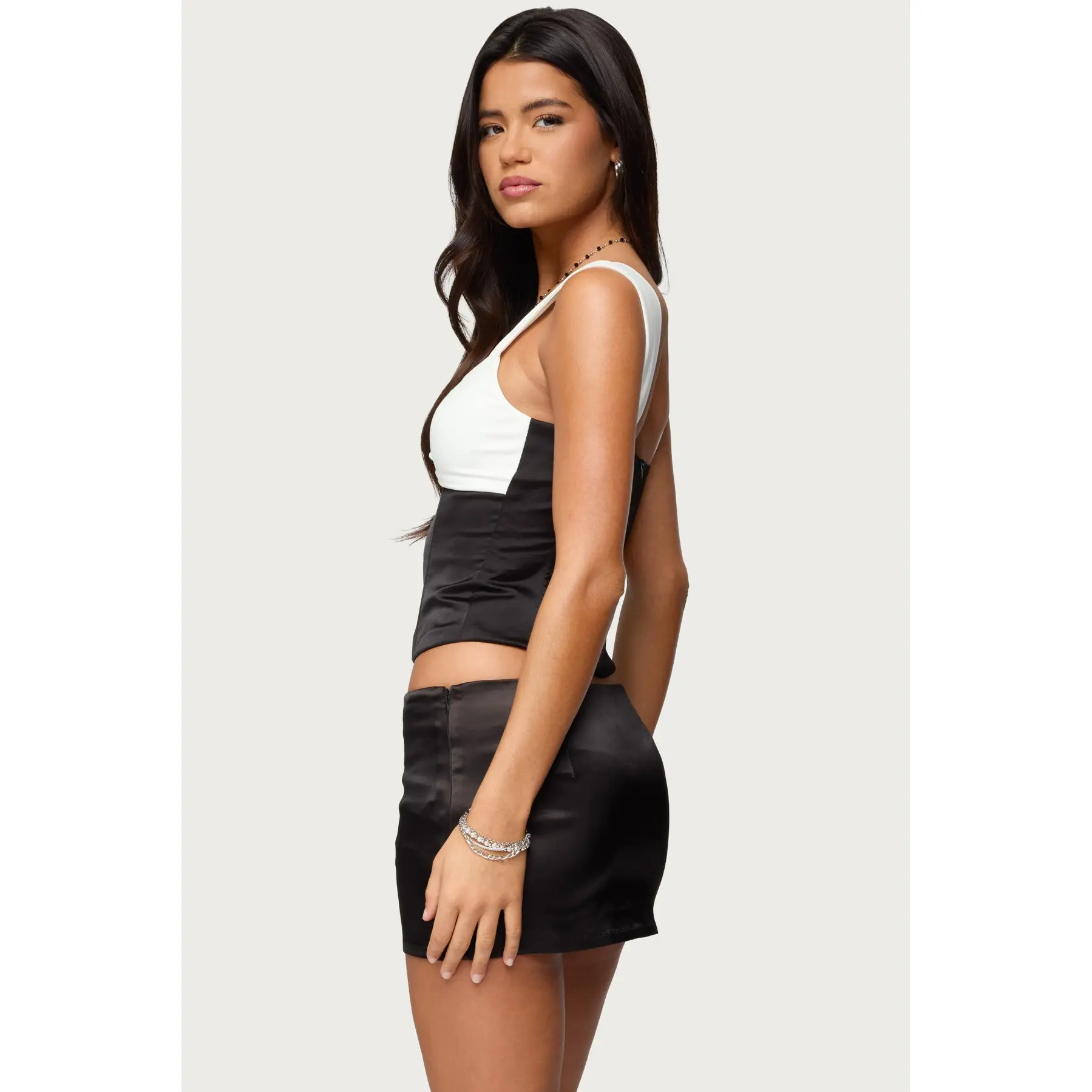 Leandre Contrast Satin Effect Boned Top