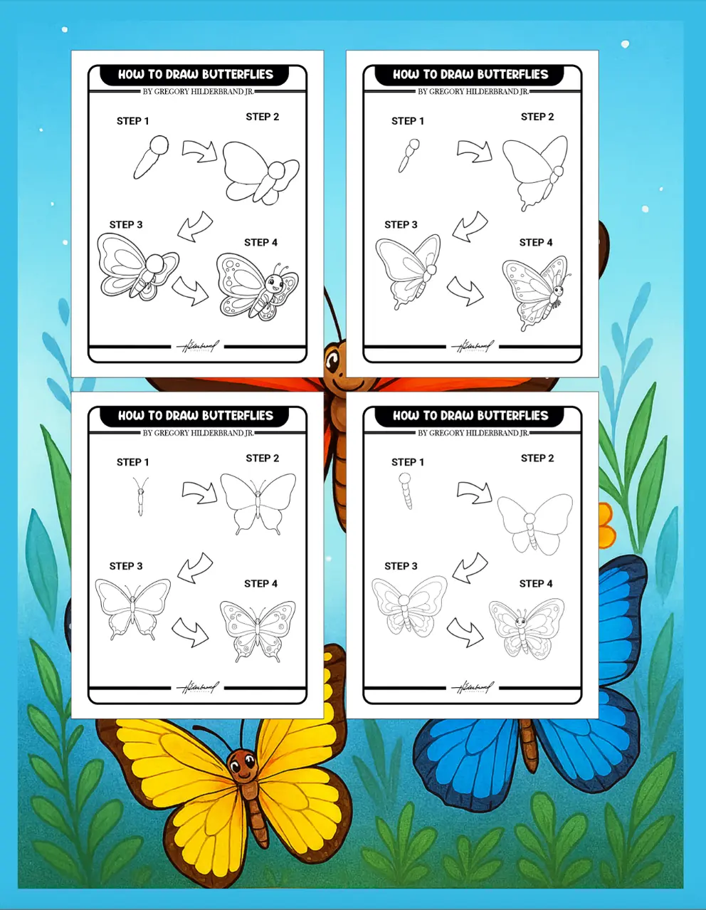 Grab your pencil, follow the steps, and watch your butterfly drawings take flight!