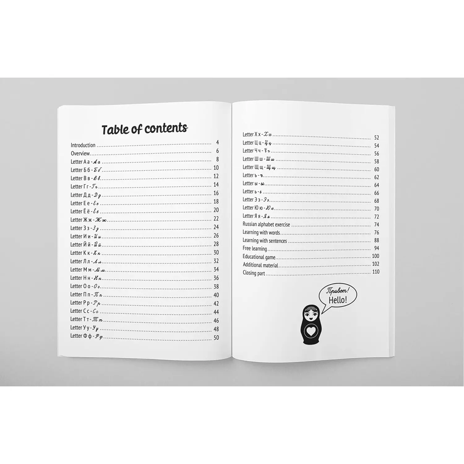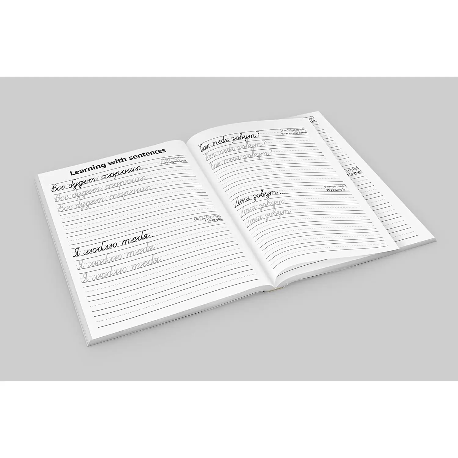 This book will help you with numerous exercises to learn how to write the Russian letters as well as individual words and sentences.