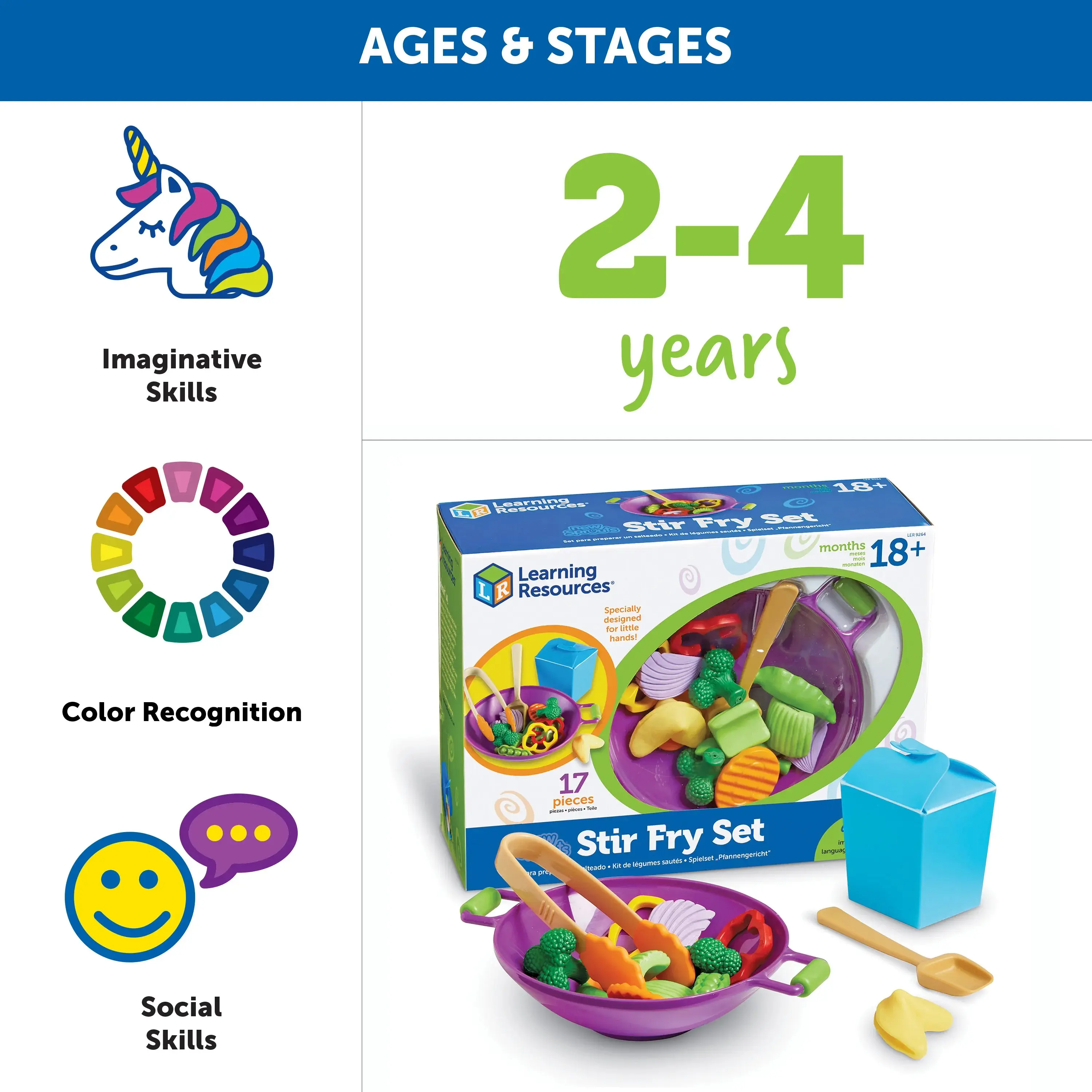 • Spark your child's imagination with this realistic stir-fry play food set. Perfect for toddlers aged 18 months+, it includes a wok, tongs, and a to-go container. Build vocabulary and motor skills through pretend play. Kids will enjoy handling easy-to-handle soft plastic pieces.
