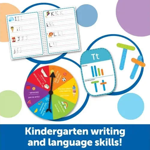 Play your way to kindergarten-ready skills with these fun, quick activities! This 38-piece set's hands-on activities help kids learn and retain lessons in pencil skills, letter formation, writing, and other kindergarten language skills through fun, active play. Plus, the built-in carrying case lets you take the learning on the go!