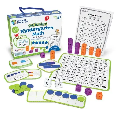 Play your way to kindergarten-ready skills with these fun, quick activities! This 81-piece set's hands-on activities help kids learn and retain lessons in addition, subtraction, and other kindergarten math skills through fun, active play. Plus, the built-in carrying case lets you take the learning on the go!