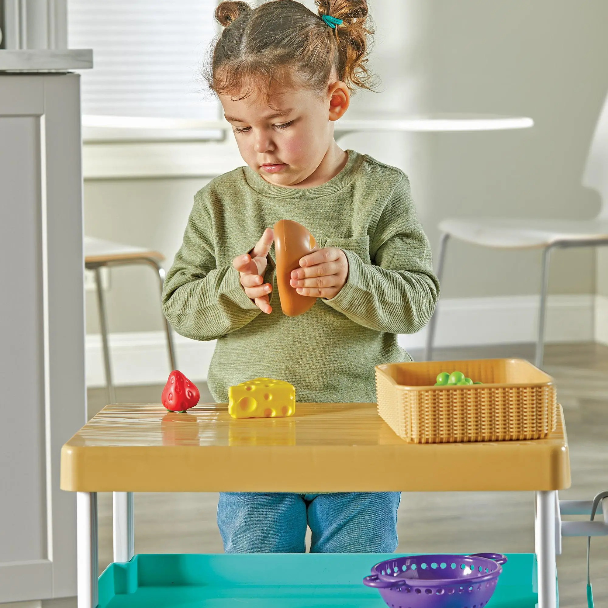 ·Play Food Included: This set of play kitchen accessories includes 6 pieces of durable, realistic play food plus a colander and tongs, so kids can start planning their next feast right away!