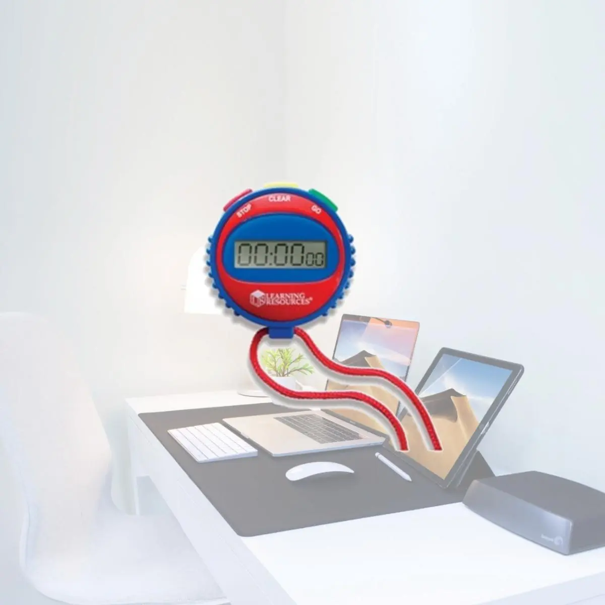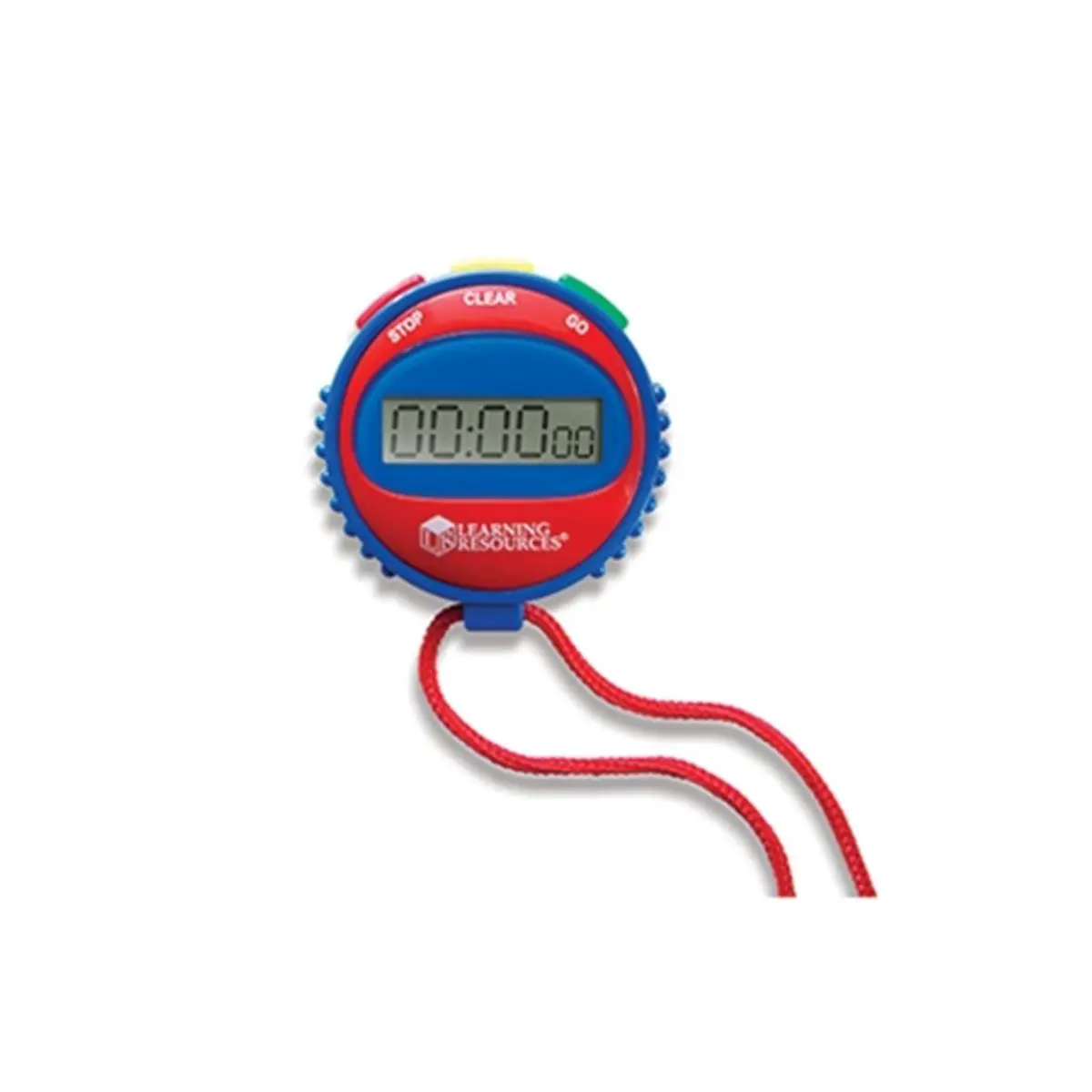 Even your youngest students can master it. Only 3 buttons—green for go red for stop and yellow for clear. Great for classroom management centers timed math exercises science investigations and measuring elapsed time. Easy-to-read display shows minutes seconds and 1/100 seconds. Measures 3''H. Requires one 1.5V button-cell battery included. Grades K and up
