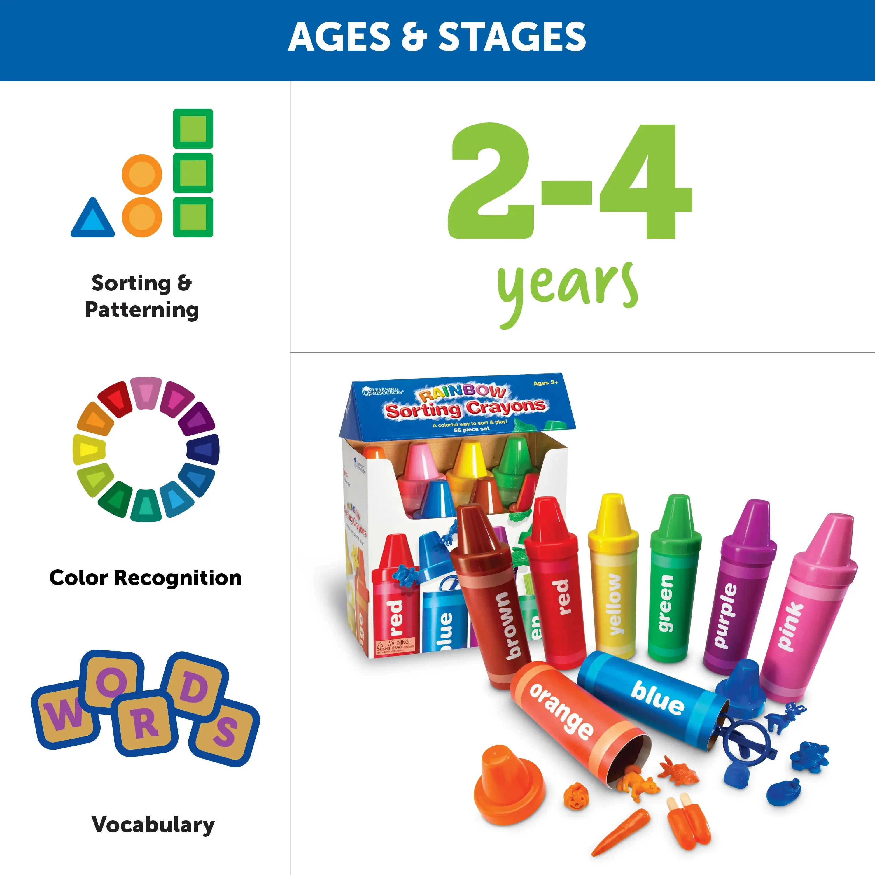 ·DEVELOPS COLOR RECOGNITION SKILLS - Eight vibrant jumbo crayons help children learn to identify and sort colors while providing a fun, hands-on learning experience that keeps them engaged for hours