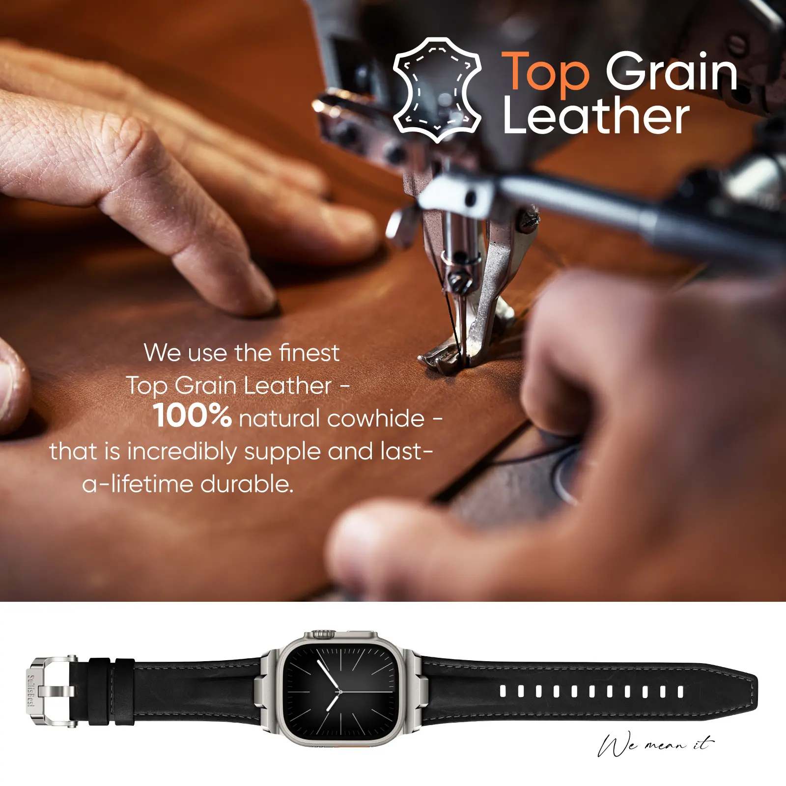 Our iwatch ultra band is made from 100% natural cowhide that is incredibly soft and breathable. This high-quality material ensures excellent color retention and is odor-free, providing a consistently pleasant wearing experience.