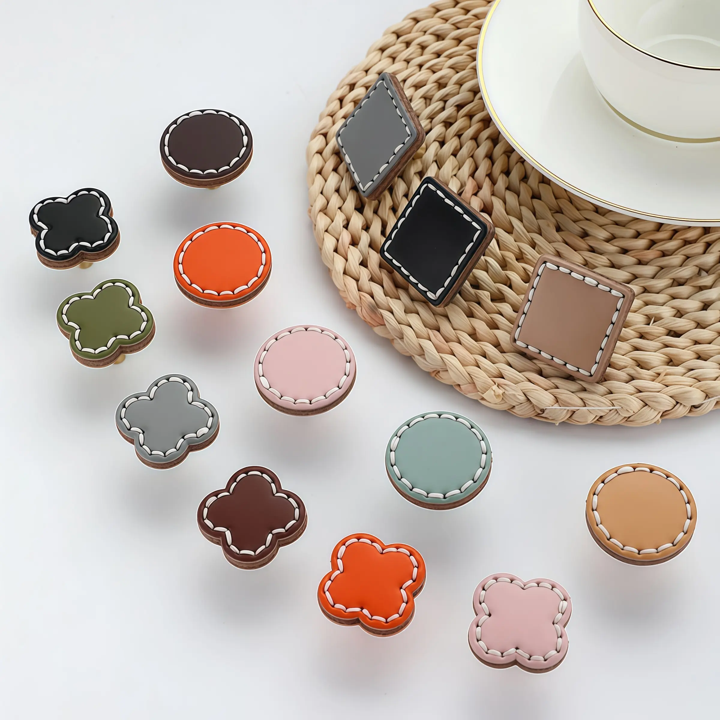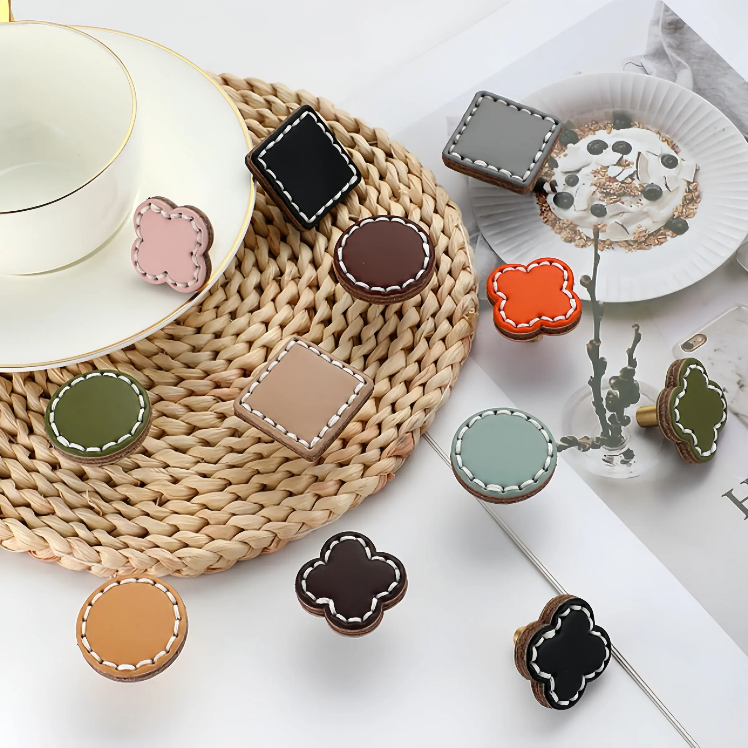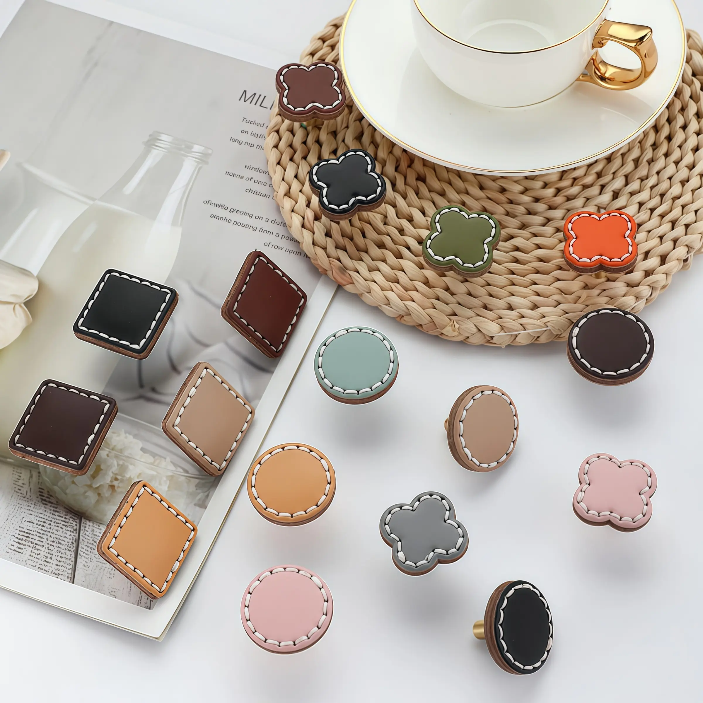 Leather Cabinet Handles Drawer Knobs, Furniture Kitchen Handles, Brass Cortex Pulls Knob, 1 Pack, No Ca Prop 65 Re