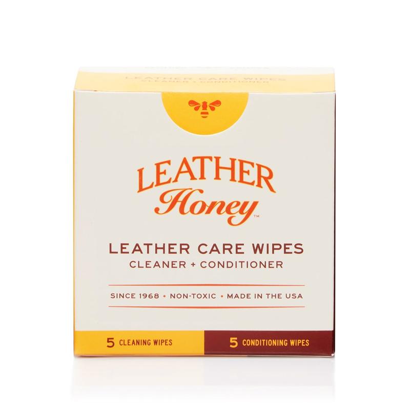 ·Leather Care On-The-Go: Convenient, durable, and individually-wrapped wipes so they won’t dry out. Contains our time-tested Leather Honey Conditioner in a thick, premium wipe.