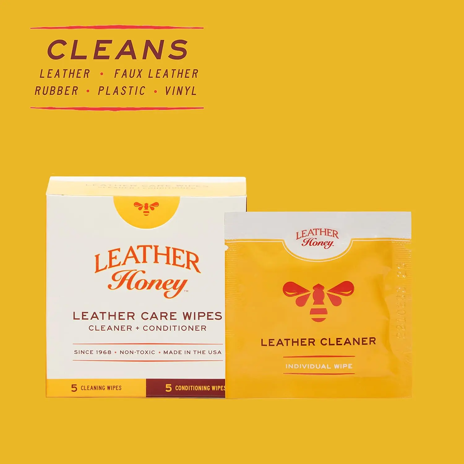 ·Leather Care On-The-Go: Pre-moistened with our Leather Honey Leather Cleaner, these durable, individually-wrapped wipes won’t dry out. Powerful, odorless, and chemical-free.
