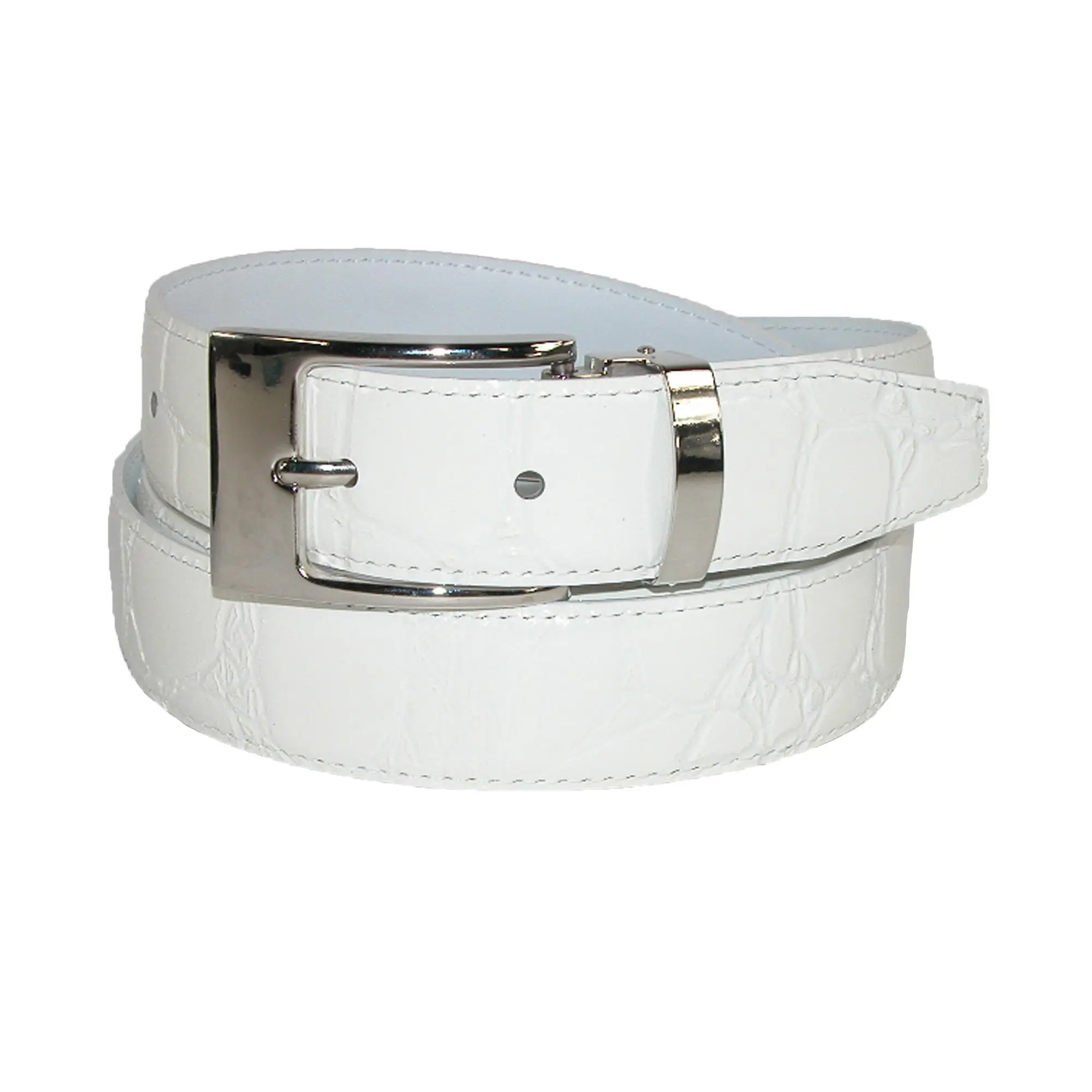 This croc print belt can go great with both dress and casual pants. A great choice for a golf belt with its high gloss finish. The buckle is removable, and can be pried off. If you want to make the belt smaller, simply take off the buckle and cut the belt before replacing the buckle.