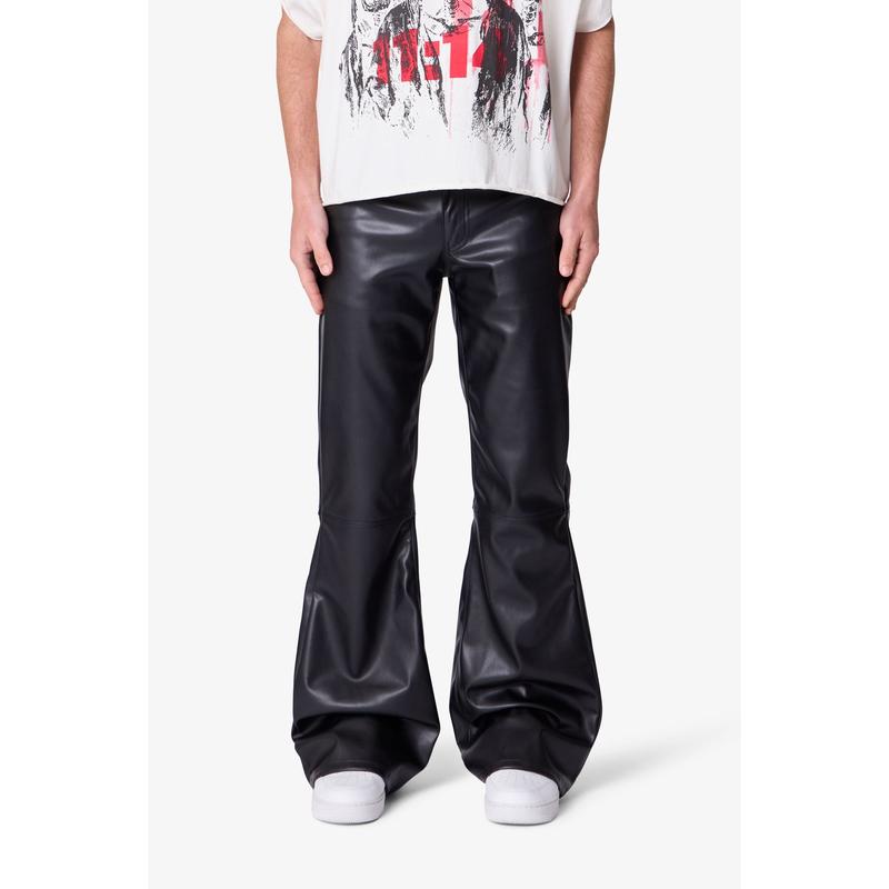 mnml Leather Flare Pants - Black