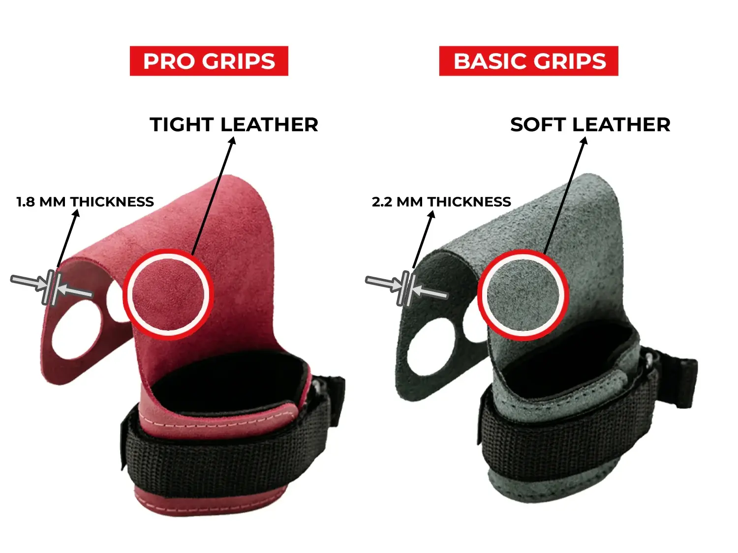 ·Premium Quality Leather: Our Leather Hand Grips are crafted from high-quality genuine leather - basic 2.2mm thickness, PRO 1.8mm thickness. Ensuring durability and a comfortable feel during your workouts.