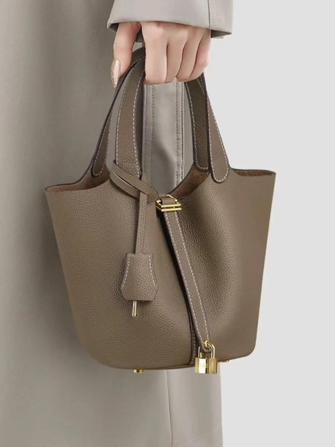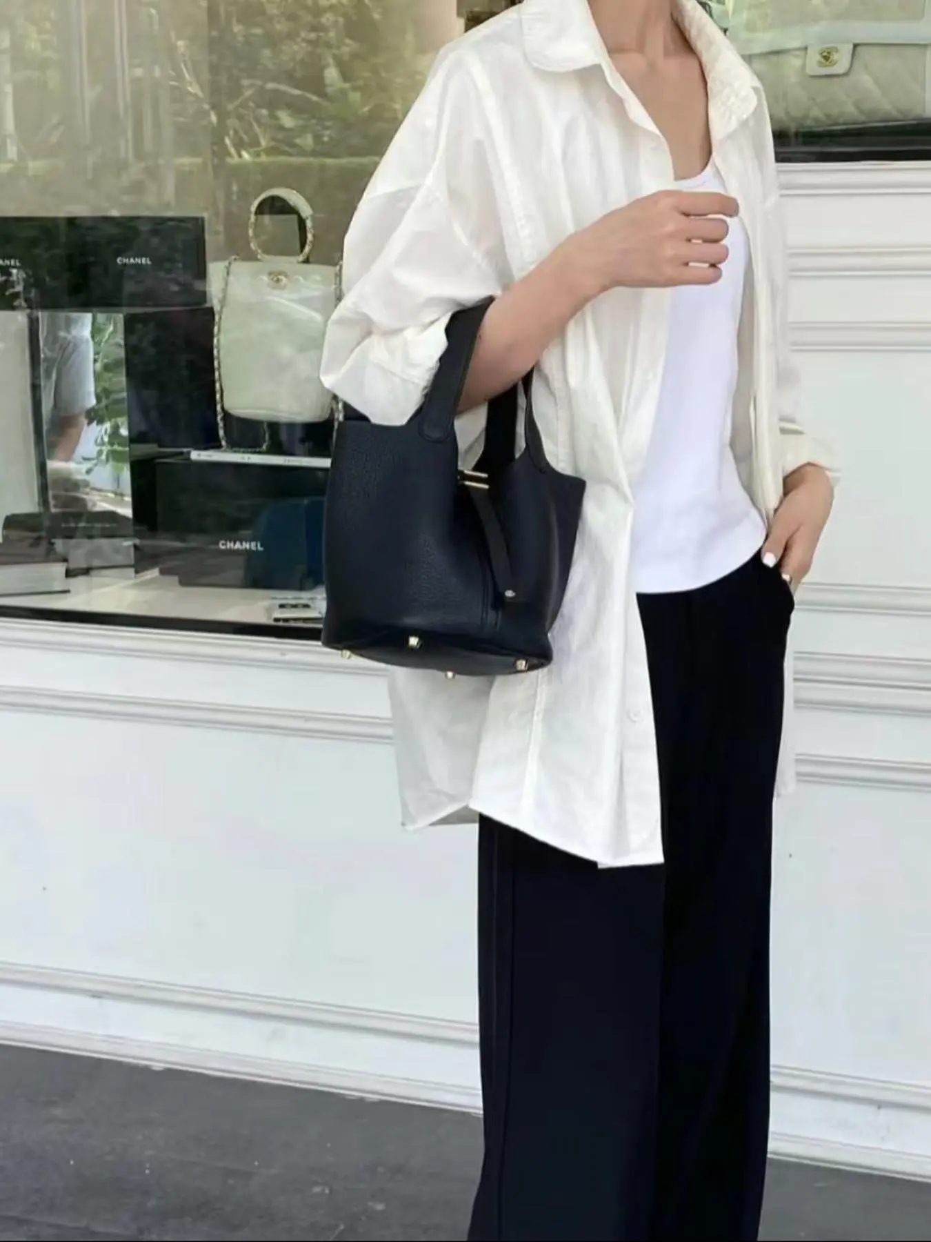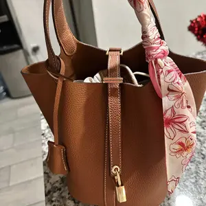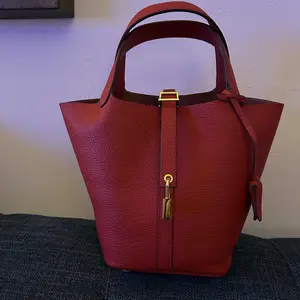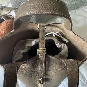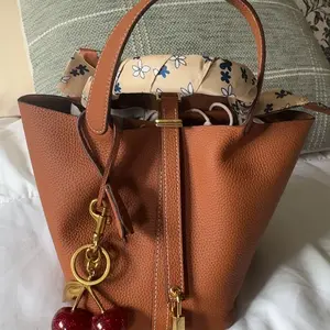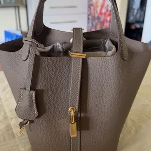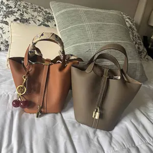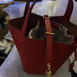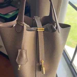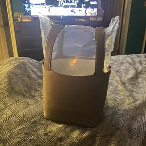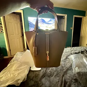 Love this bag so much! I cant say enough good things about it! It looks identical to a H Picotin bag. Identical! If ykyk! Shipped to me in 2 days! The leather smell when opening is beyond devine. This is my second bag I have the gold on gold one the brown one. Loved it so much I grabbed one in black. I plan to get a white and dream powder color as well bc they are fantastic bags with luxury style. 1000/10! I strongly and highly recommend!