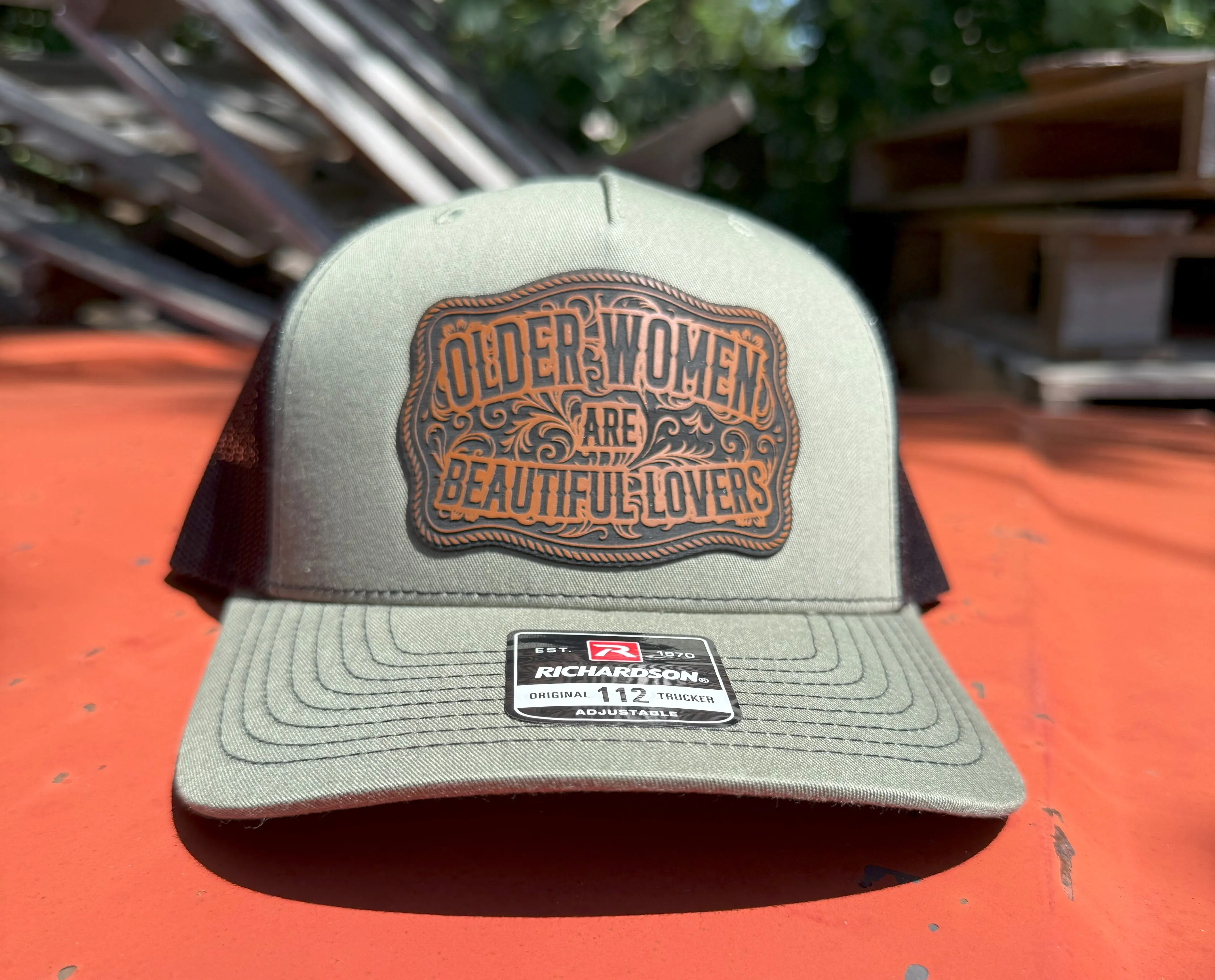 Bad Hats - Older Women Are Beautiful Lovers - Leather Patch Hat - Adjustable Snapback Trucker Hat
