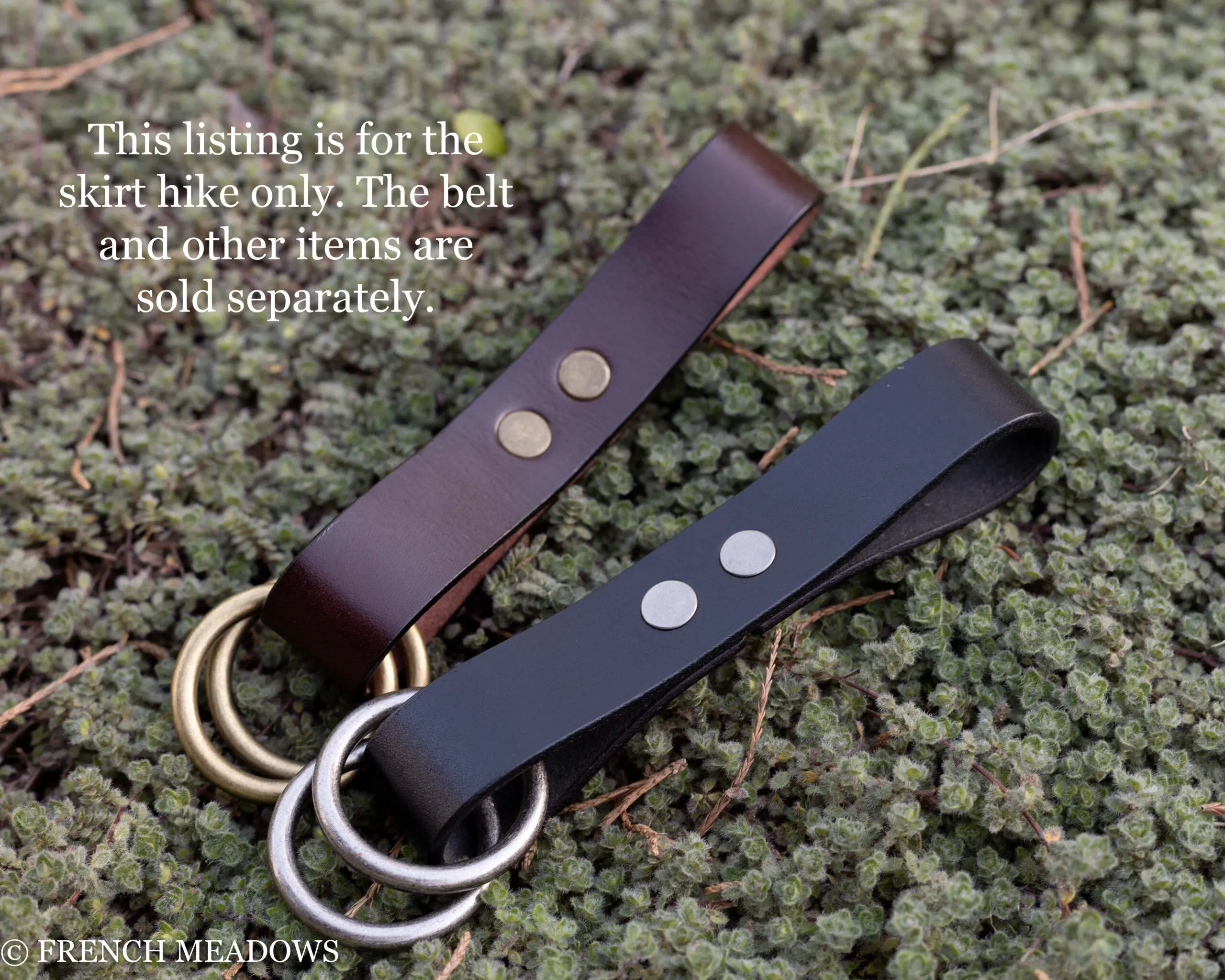 Add these skirt hikes to a belt to get your renaissance skirt up and out of the way, to create fullness, or to show off the layers of your petticoat underneath. Made with the highest quality full grain cow leather and metal O-rings, these skirt hikes can fit onto belts up to 2.5" wide. Perfect for adding to a belt on your renaissance faire, medieval, viking, cosplay, or LARP costume.