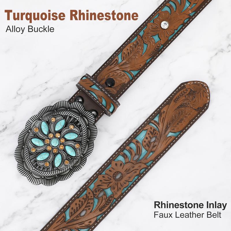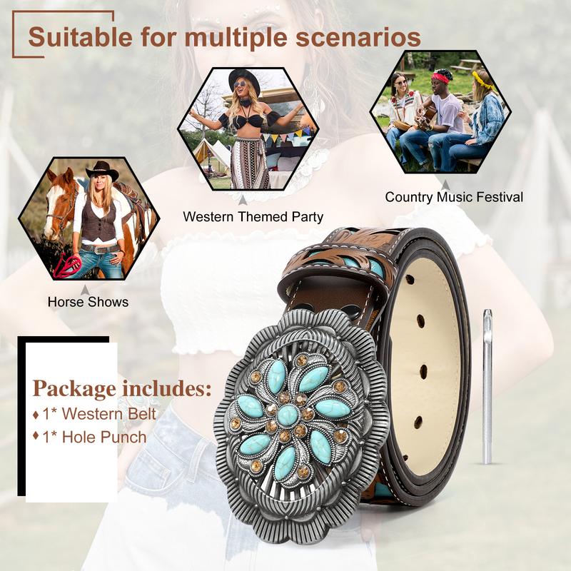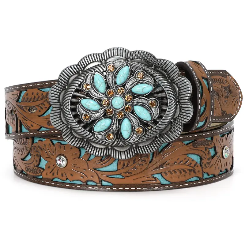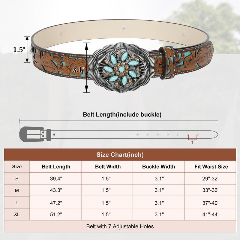 Unique Carving Patterns: High quality mens western leather belt, exquisite oiledge craft, fit and comfort. Western-inspired leather buckle belt featuring embossed pattern adds the perfect touch to any pair of jeans, pants. Cowboy cowgirl belts for men and women.