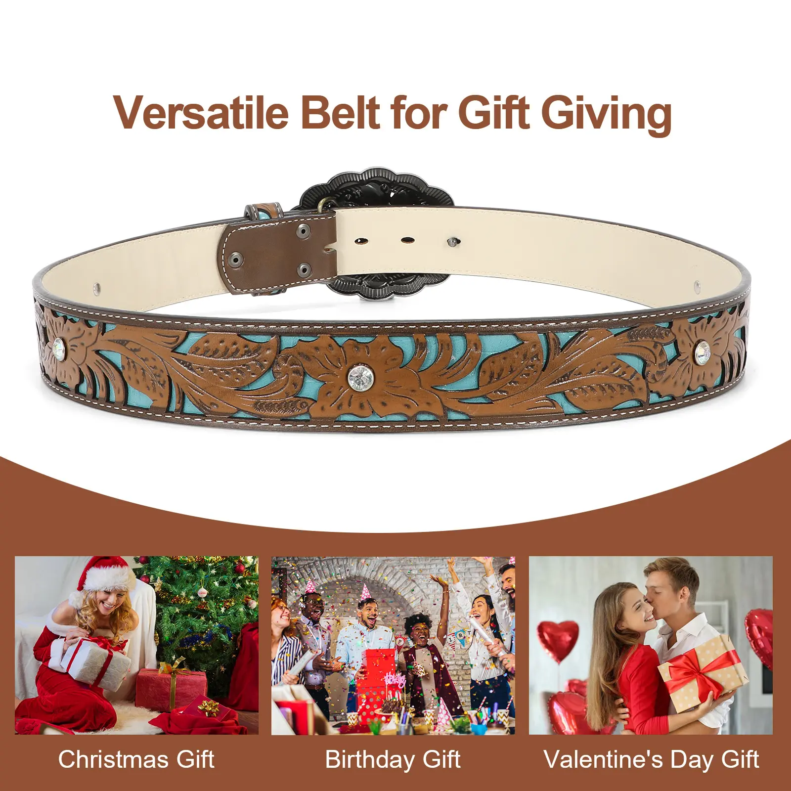 Christmas Gifts Western Belts for Men Women: Quality cowboy and cowgirl style belts leather packed in a box that could easily be gift-wrapped. Very delicate and functional men's belts leather, classic western leather belt straps are suitable as gifts for your family and friends.
