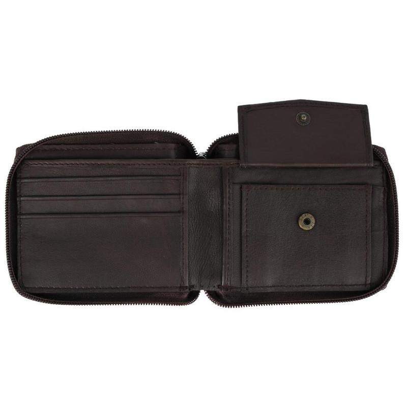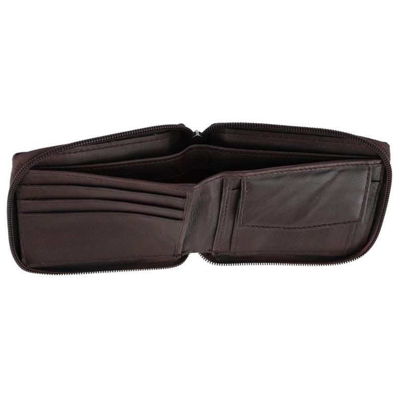 Upgrade your everyday carry with this Leather Zip Around Bifold Wallet. Compact yet highly functional at 4.5 x 3.5 inches, it's designed for both men and women who value security and organization. Inside, three card slots and two slip pockets keep cards and receipts neatly arranged, while a snap-close coin pocket ensures loose change is always within reach. The divided bill compartment adds extra organization, making it ideal for travel or daily use. Finished with a reliable zip-around closure, this compact leather wallet delivers durability, style, and peace of mind in one versatile accessory.