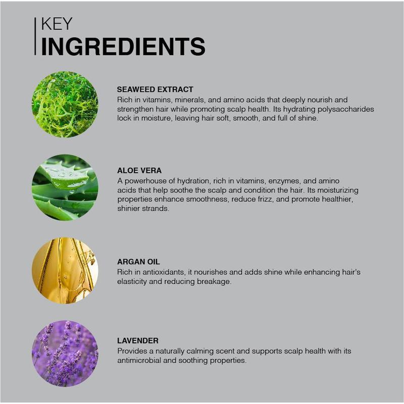 ·Seaweed Extract – Deeply hydrates and helps retain moisture, leaving hair soft and revitalized.