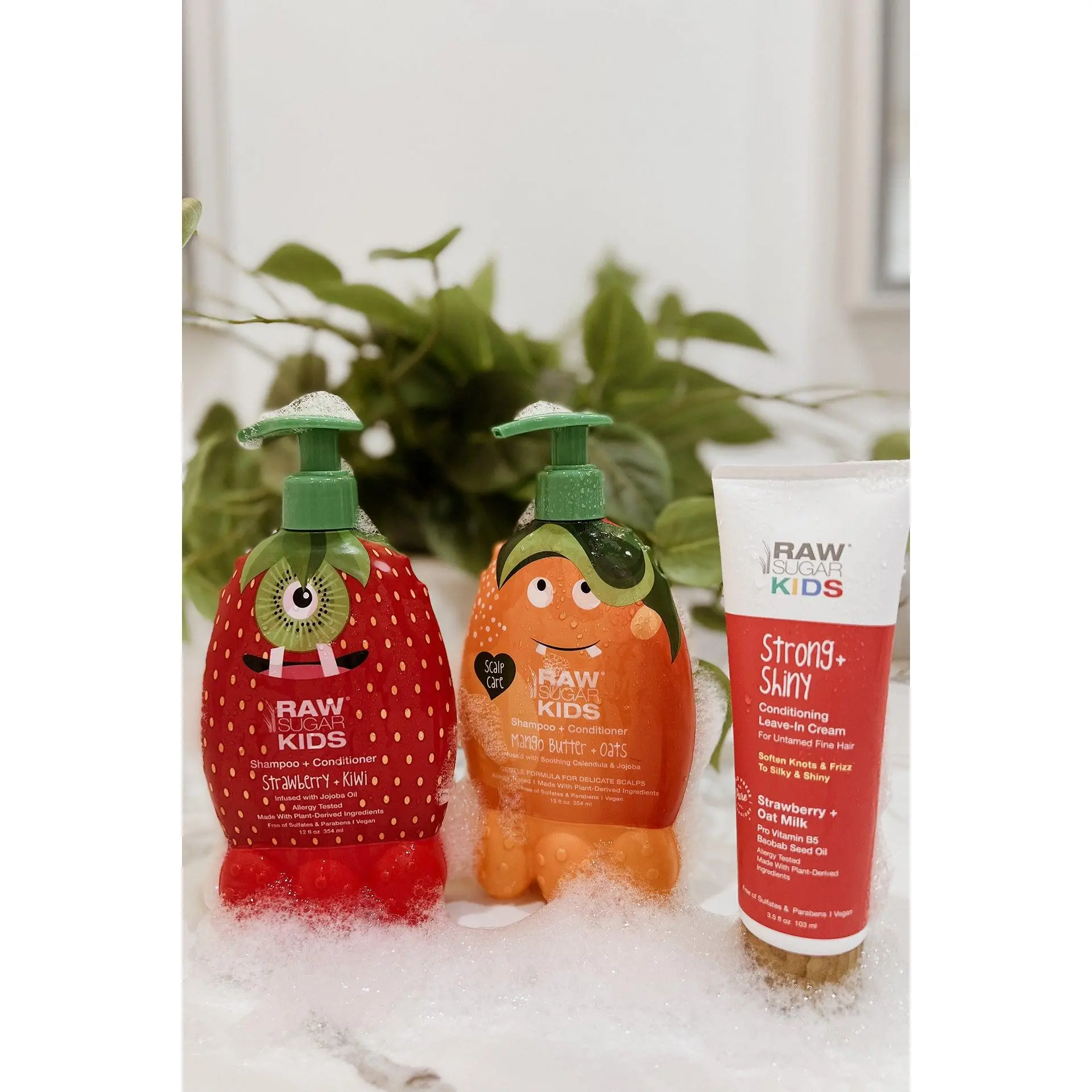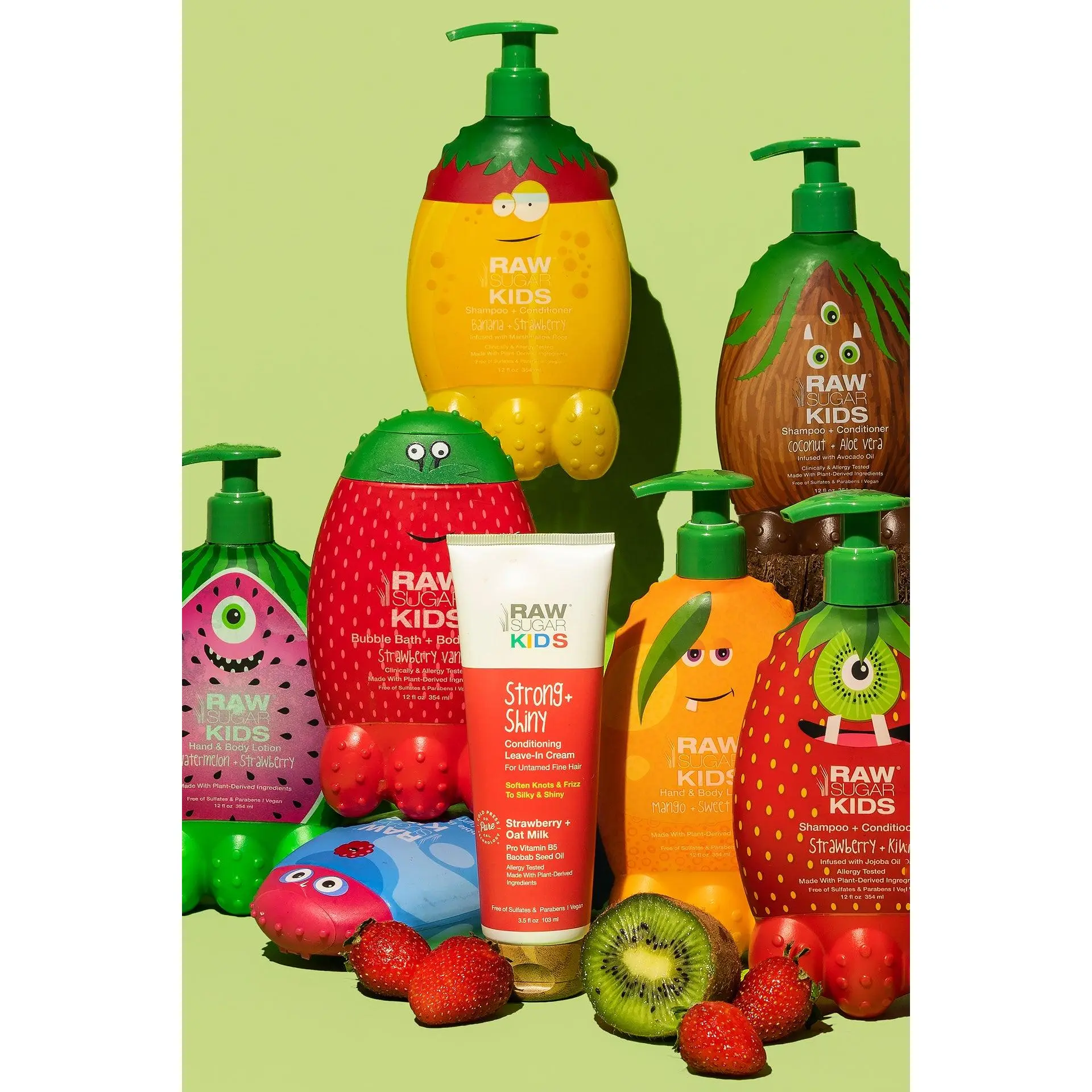 Raw Sugar Kids' Hair Care is Vegan, Animal Test-Free, Dermatologist-Tested, and formulated without Sulfates and Parabens. Our products are packaged in Post-Consumer Recycled Plastic and made with good-for-you ingredients that won't harm or strip the hair or skin of its natural goodness. We use the highest quality fragrances in our products and follow strict EU guidelines. Each Raw Sugar purchase supports the Raw Sugar Initiative, dedicated to making clean water and soap available to those who need it most.