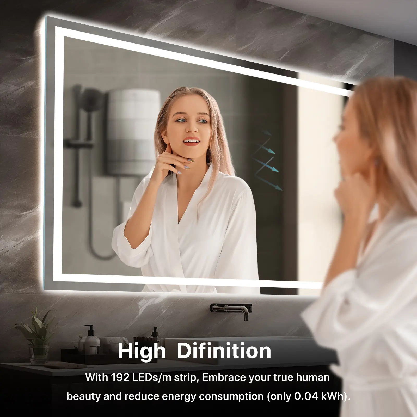 No more wiping steam! A single tap activates the rapid defogging function, keeping the mirror crystal clear after showers. Forgot to turn it off? The mirror automatically powers down after 1 hour, saving energy effortlessly.