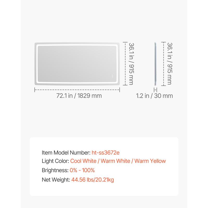 • Tempered Shatterproof: This bathroom mirror with lights is made with a physical tempering process to enhance the glass's shock durability and explosion-proof performance. It also features excellent flatness and transparency, providing a clear, distortion-free reflection. Not only is it visually appealing and durable, but it is also more reliable and secure.