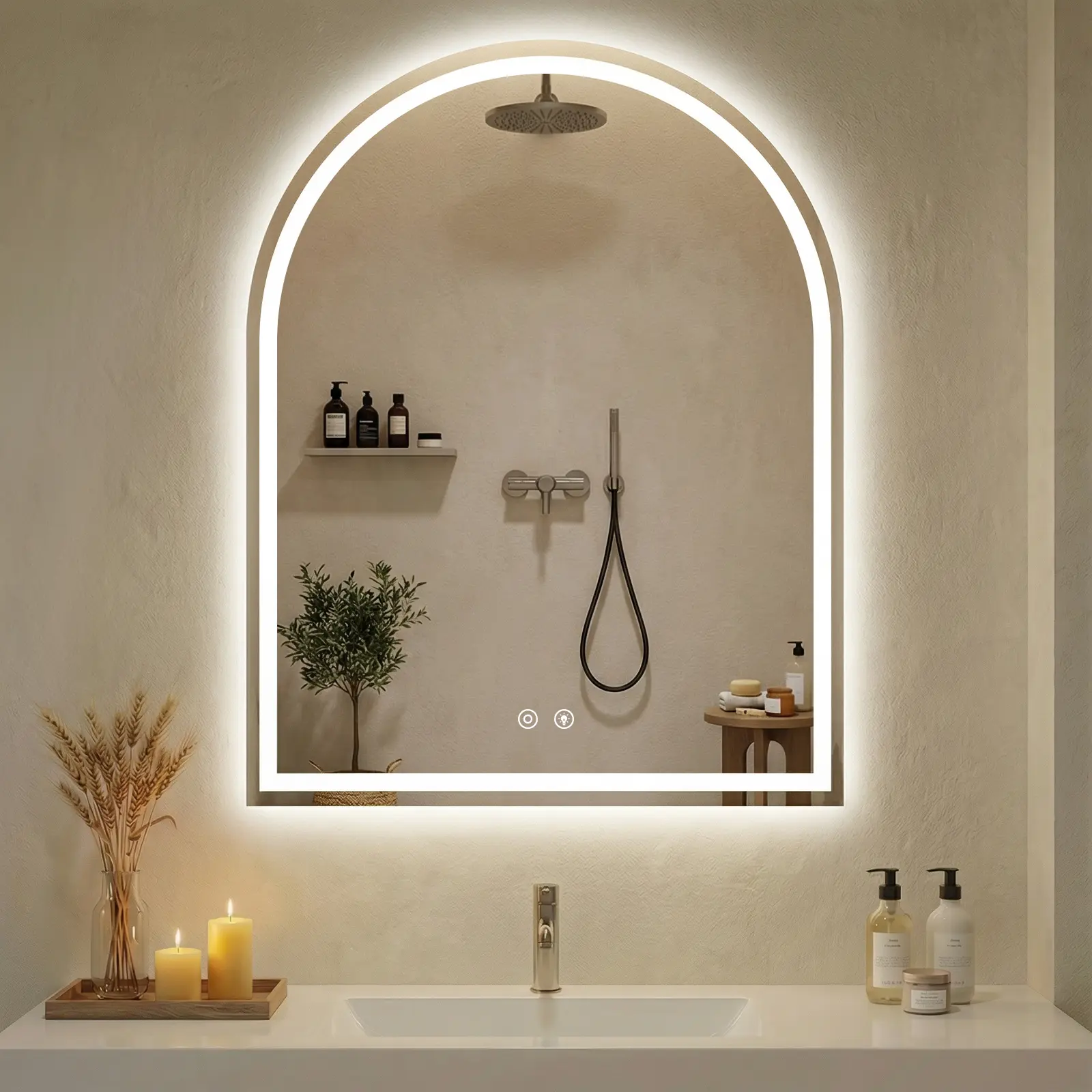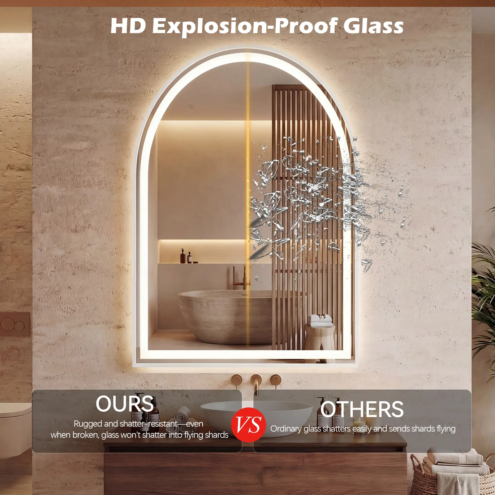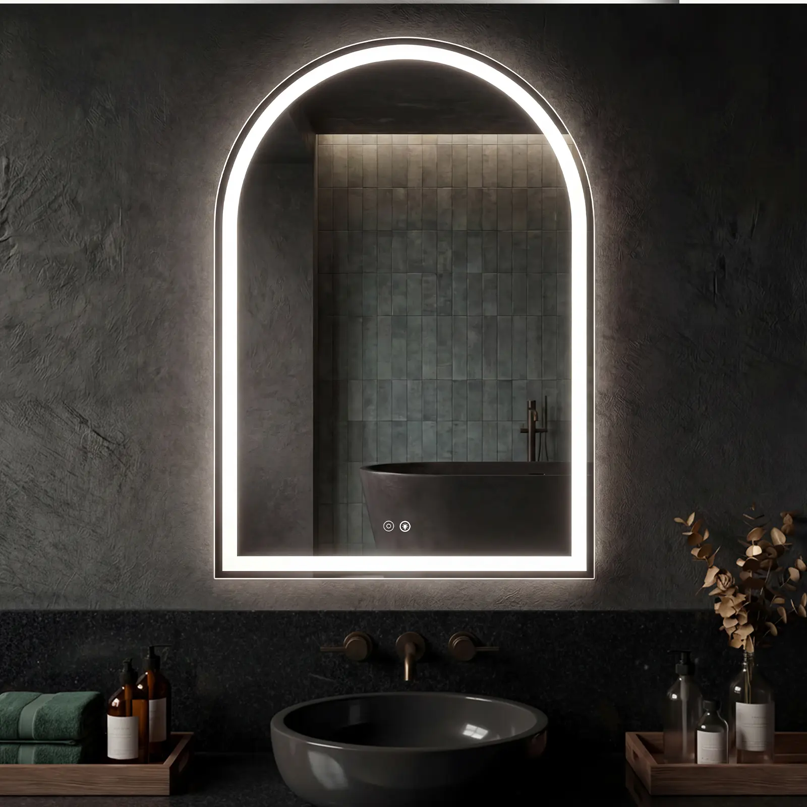 Stylish Premium Aluminum Frame - Design: Black arched lighted bathroom mirror with a sleek and modern design. - Material: Aircraft-grade aluminum frame for durability and shatterproof qualities.