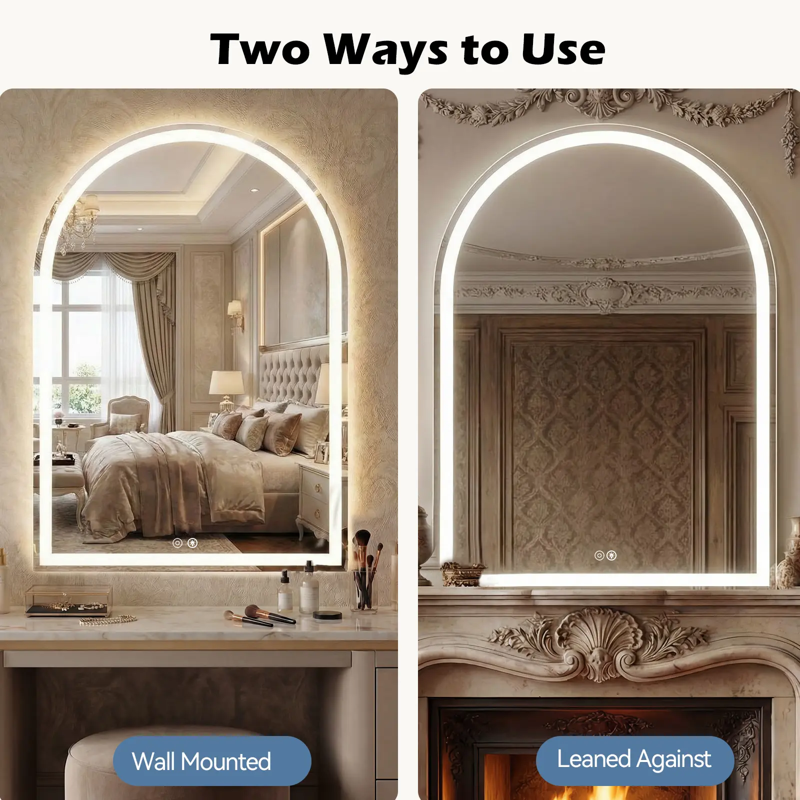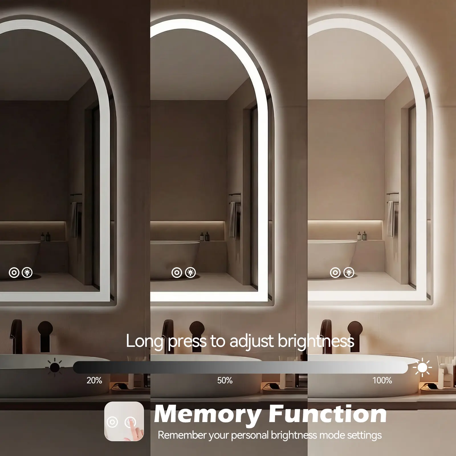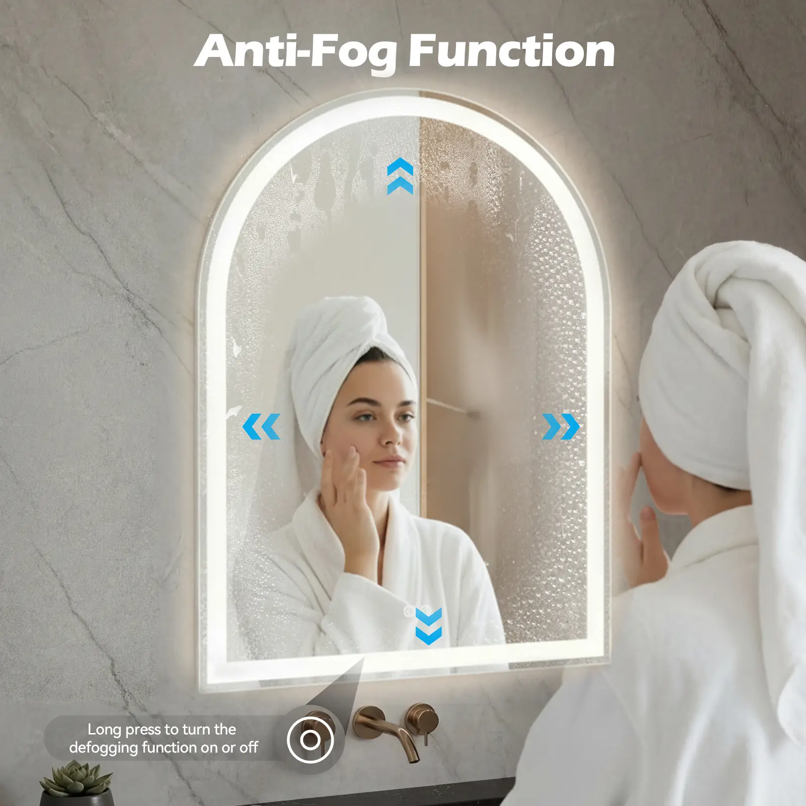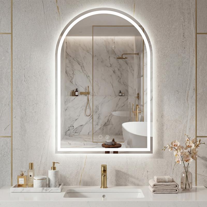 Stylish Premium Aluminum Frame - Design: Black arched lighted bathroom mirror with a sleek and modern design. - Material: Aircraft-grade aluminum frame for durability and shatterproof qualities.
