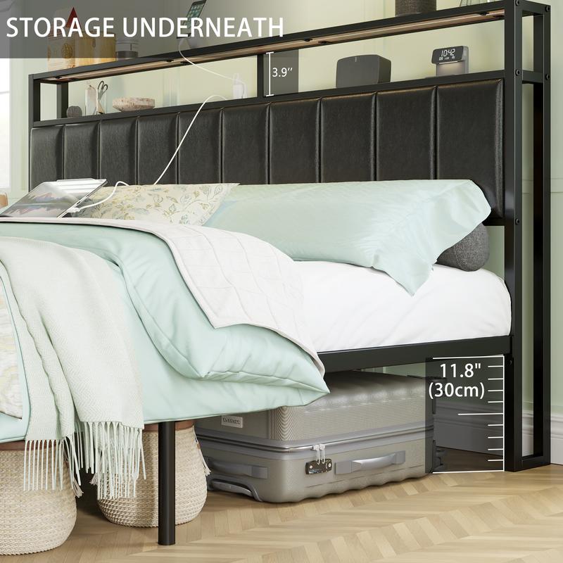 【Stylish & Convenient】2-Tier storage Headboard with 2 standard plug outlets and 2 USB ports, keep your devices within easy reach; with black leather add a beautiful and quality touch to your bedroom.