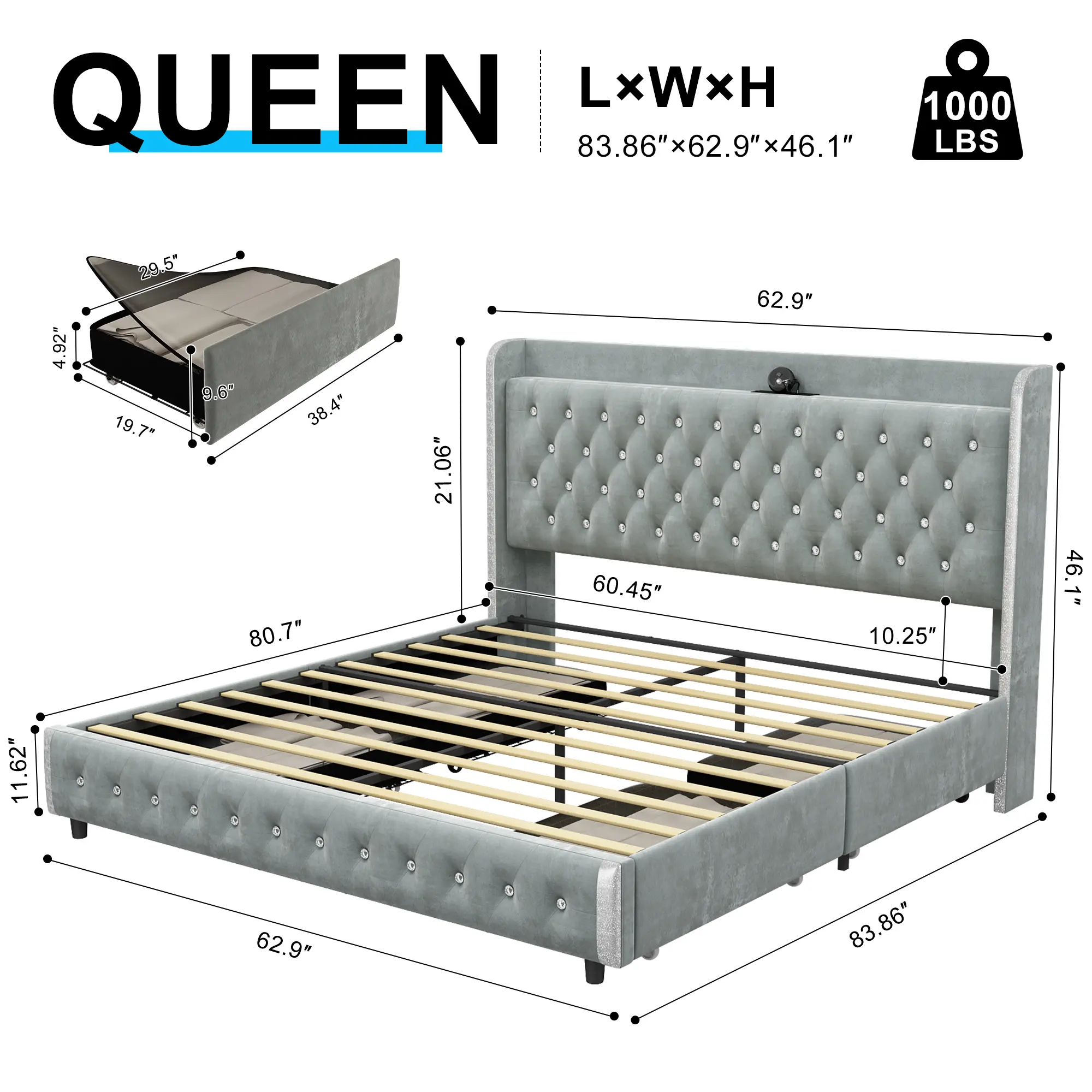·Convenient storage solutions: Fabric pockets in the headboard keep essentials close at hand. Spacious foot drawers slide smoothly and feature washable, dust-free lids to keep storage organized and within reach. (Of course, we offer the same bed frame without storage drawers for even better value)