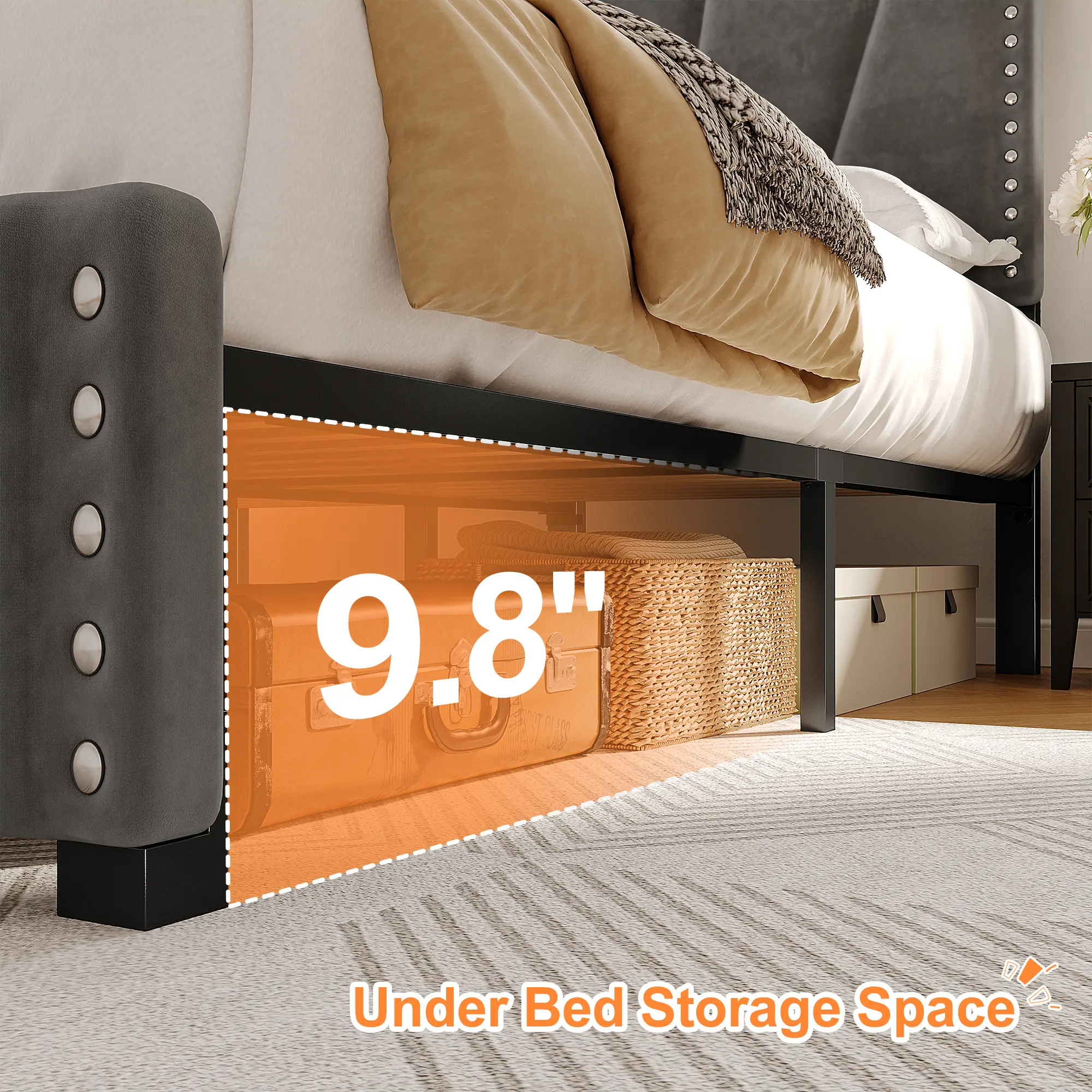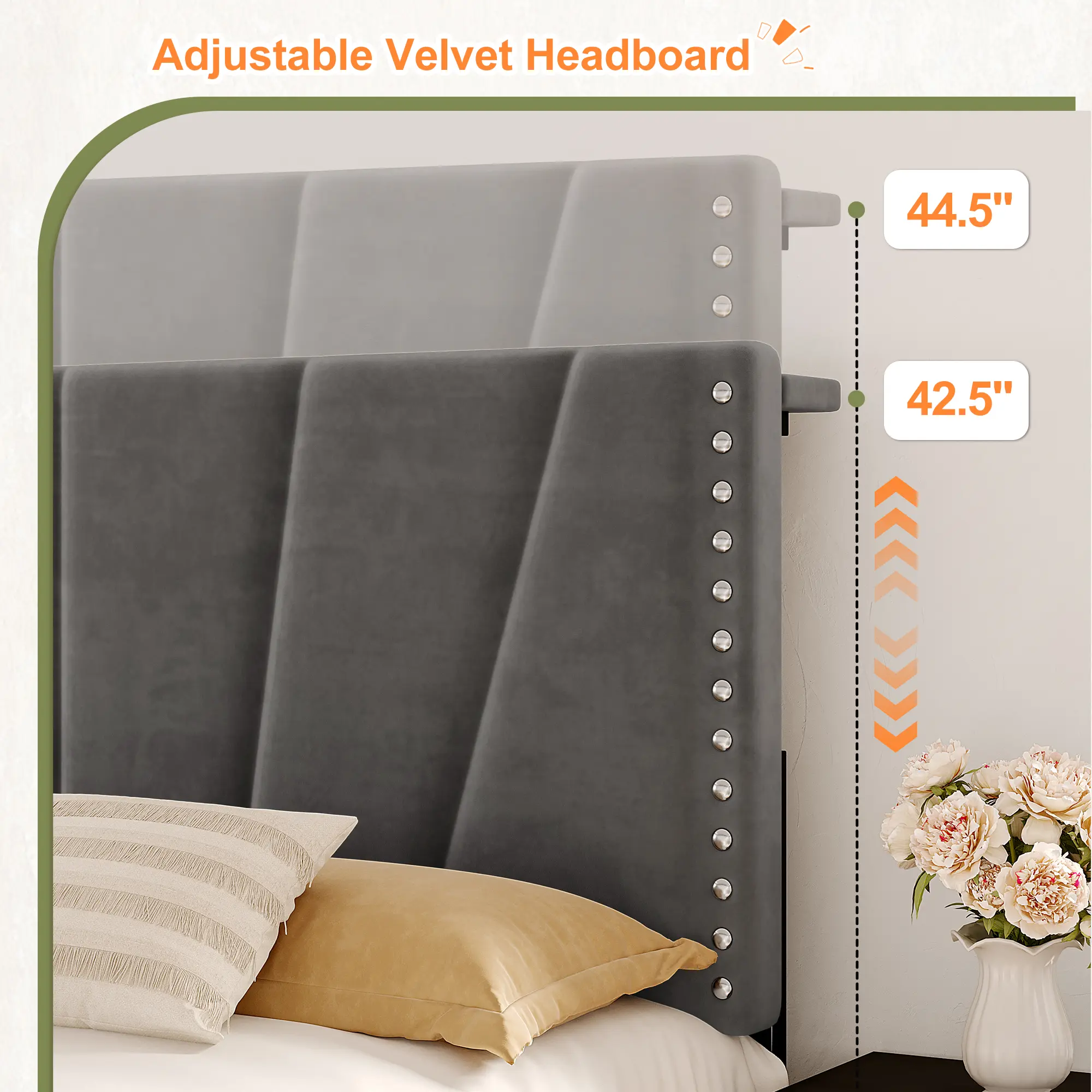 ·Velvet Headboard: Adds a touch of elegance and comfort, making your bed more inviting.