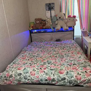 ·[ Headboard Storage ] This bed frame has a headboard storage, which can place items in the middle or above the board, and can be used to put small items such as glasses, mobile phone and others. There is 27.2cm/10.7inch storage space under the bed, and it can also be used to store clothes and other temporarily unused sundries.