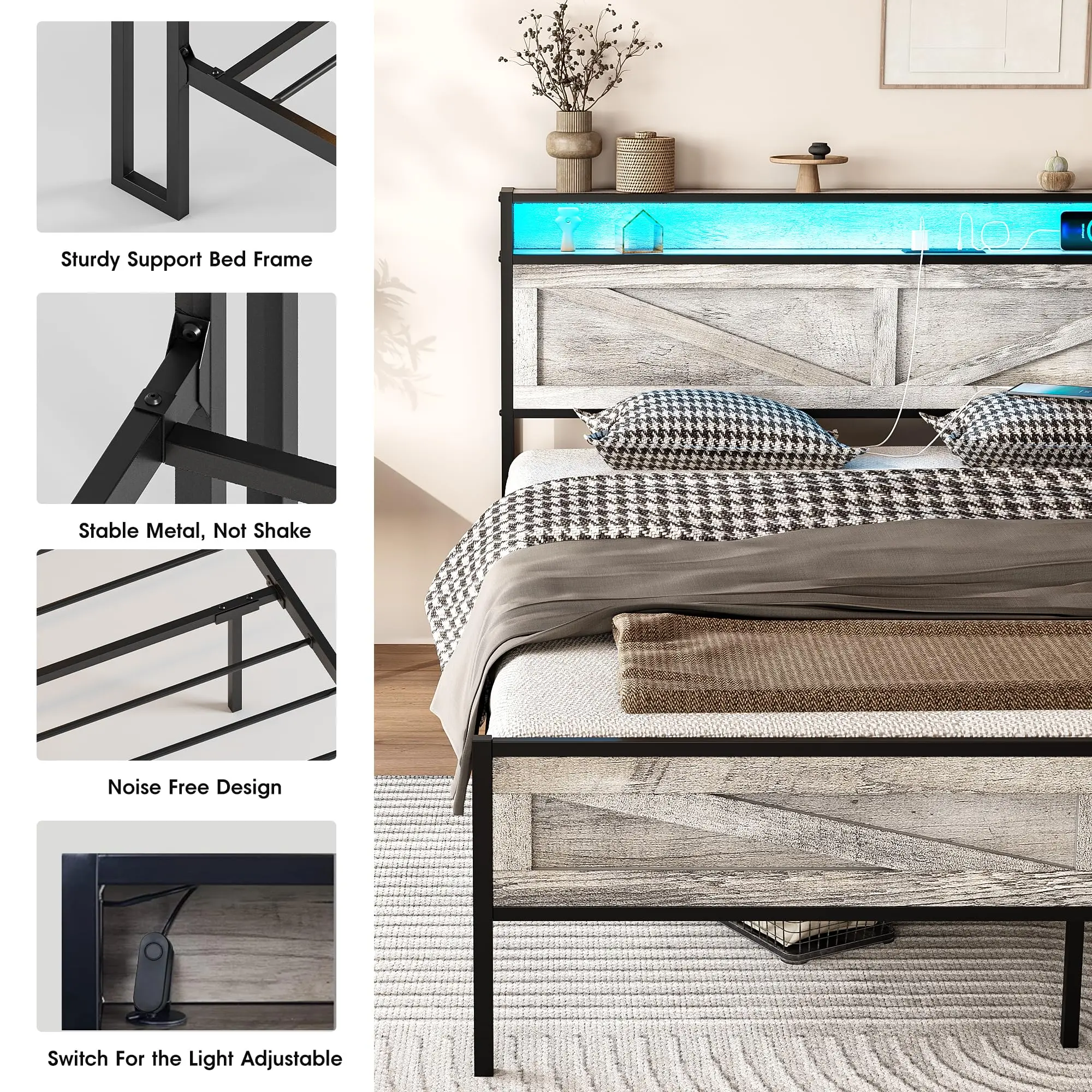 ·[ Easy to Install ] Each part of this farmhouse style bed frame is marked with label letters. According to the instructions step by step, you can easily install it by yourself. If you have problems, you can contact us at any time.