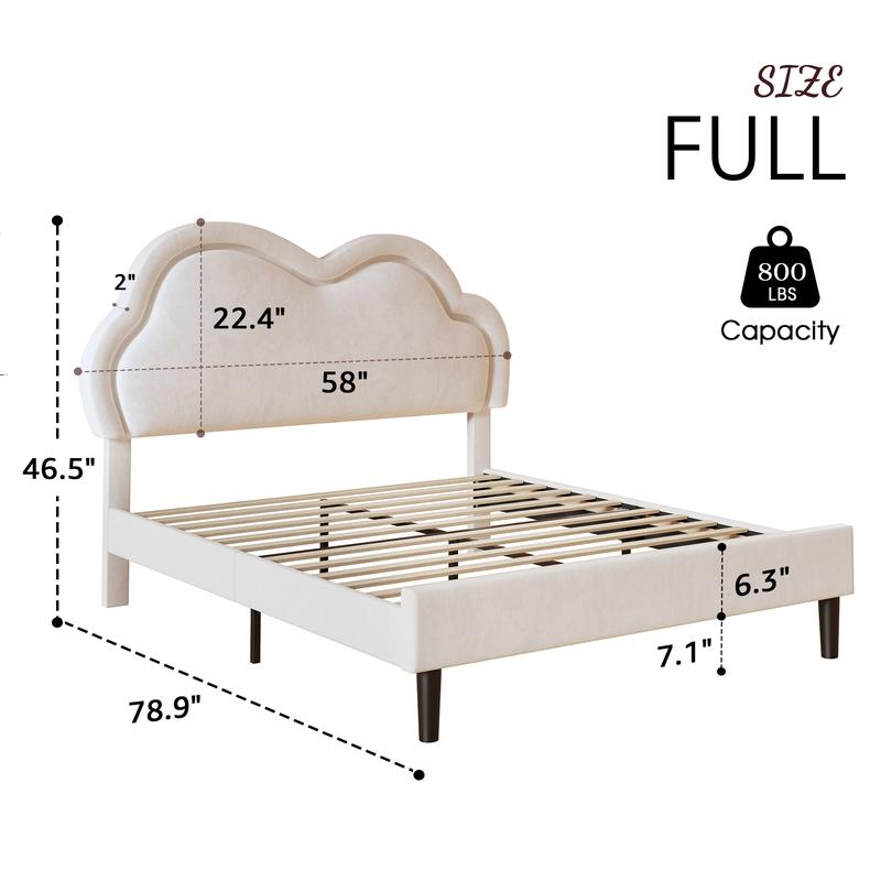 VanAcc Bed Frame with Adjustable Cloud Headboard and Customizable LED Light, Velvet Upholstered Bed, Unique Bedroom Furniture, No Box Spring Needed, Twin/Full/Queen