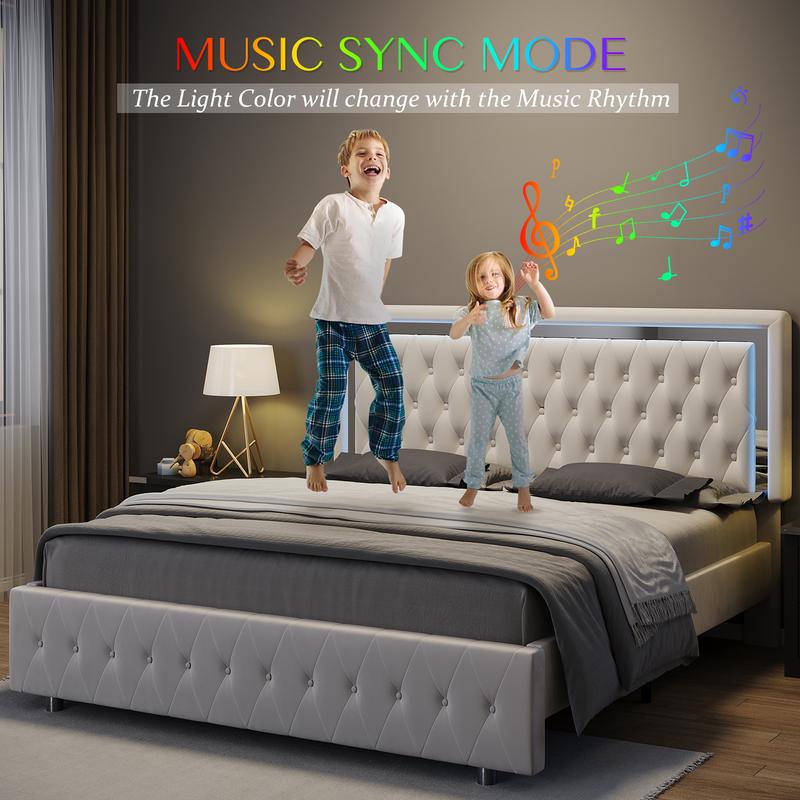 ·Smarter LED Bed Frame: Freely adjust over 60005 colors, brightness, mode, timing fuction via APP or remote. Lights flash in various music modes, holding a party in your bedroom.