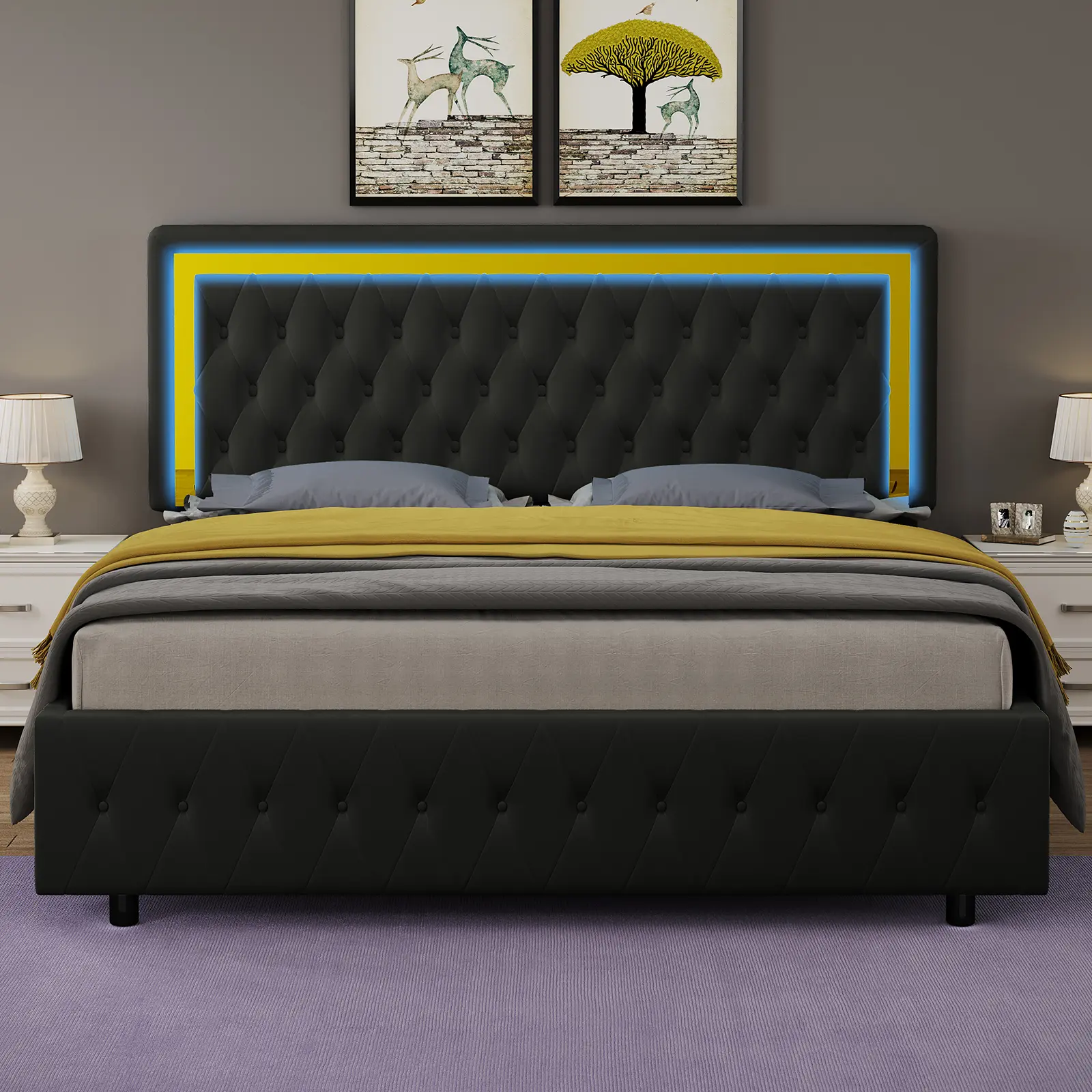 ·Easy to Assemble: All the components of this queen bed frame with LED lights clearly labeled and numbered, and you just need to match the numbers to assemble. Two people recommended.