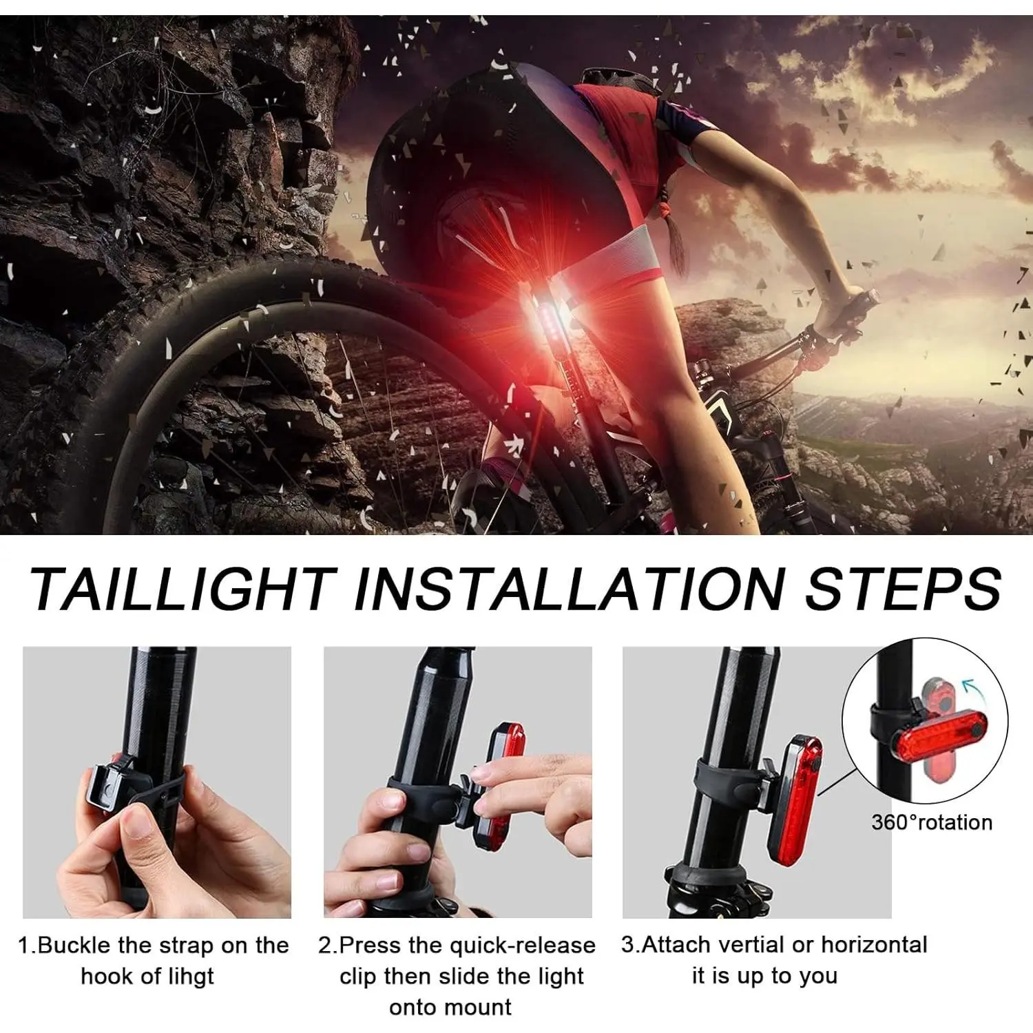 DIBMS Bike Light, High Lumens Super Bright Bicycle Lite, 6+4 Modes USB Rechargeable Bike Headlight & Taillight Set, Waterproof Safety Bike Front & Rearlight for Road, Mountain, Night
