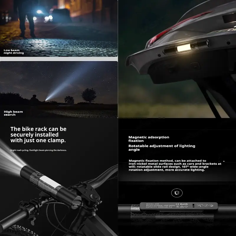 ·[Multi Function] Outstanding USB/solar dual rechargeable flashlight with 7 working modes(Headlight-High, Medium and Strobe, White sidelight- High and Medium, SOS mode-flashing red and blue.