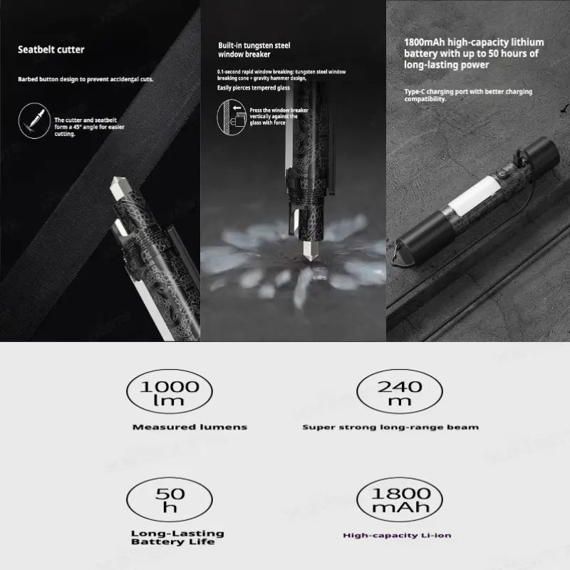·GLASS BREAKER – emergency rescue tool has a pointed steel tip that is powerful enough to shatter a vehicle’s side windows