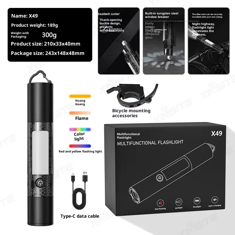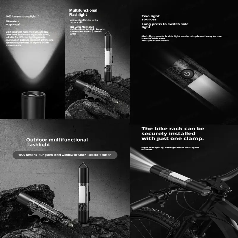 fast shipping items LED Bright Lanterns Multifunctional Outdoor Flashlight, Car Emergency Window Breaker and Cutter, 15 Lighting Modes, Side Magnet, Rechargeable Retractable Flashlight for ,Camping, Emergency and Halloween Gift light pocket biking bicyc