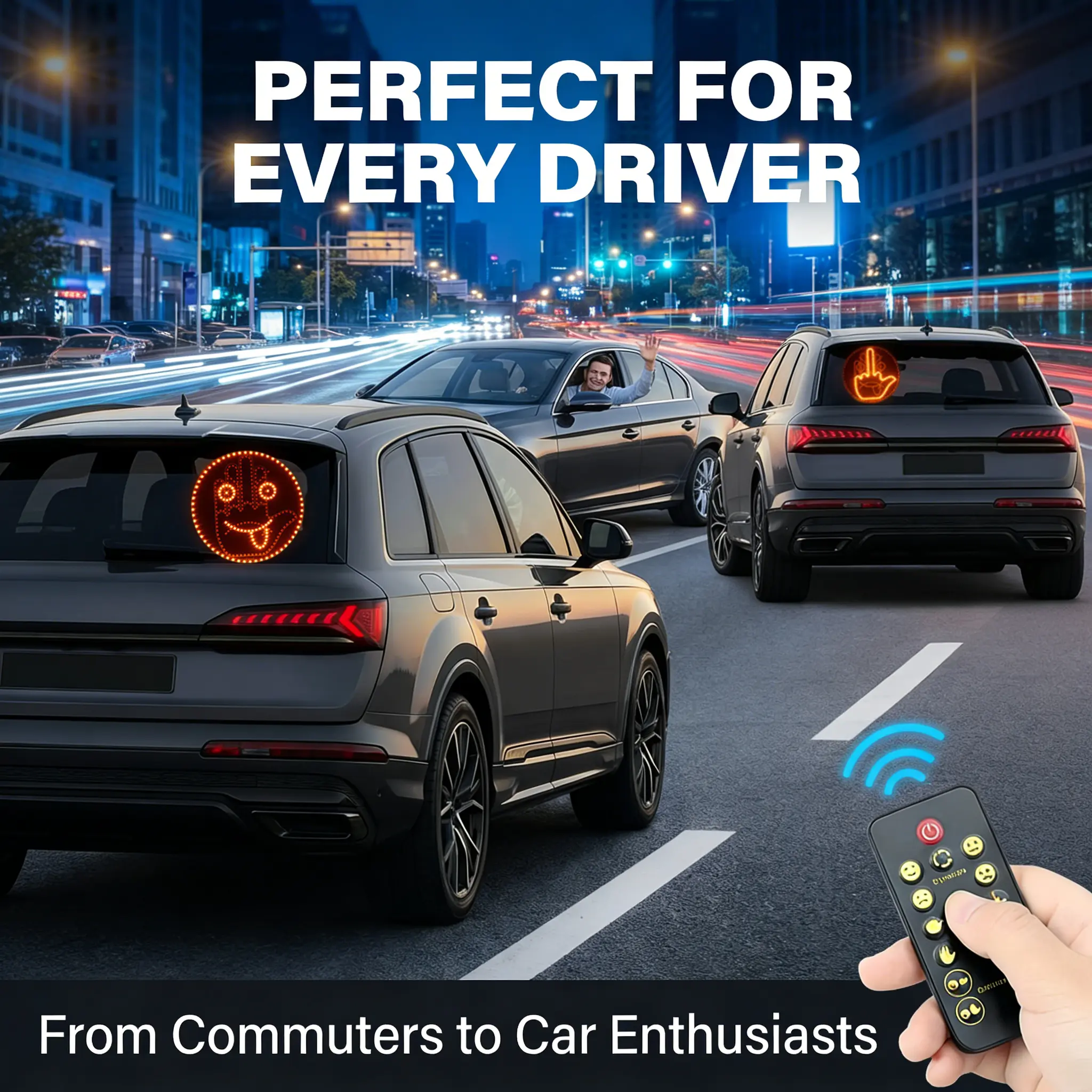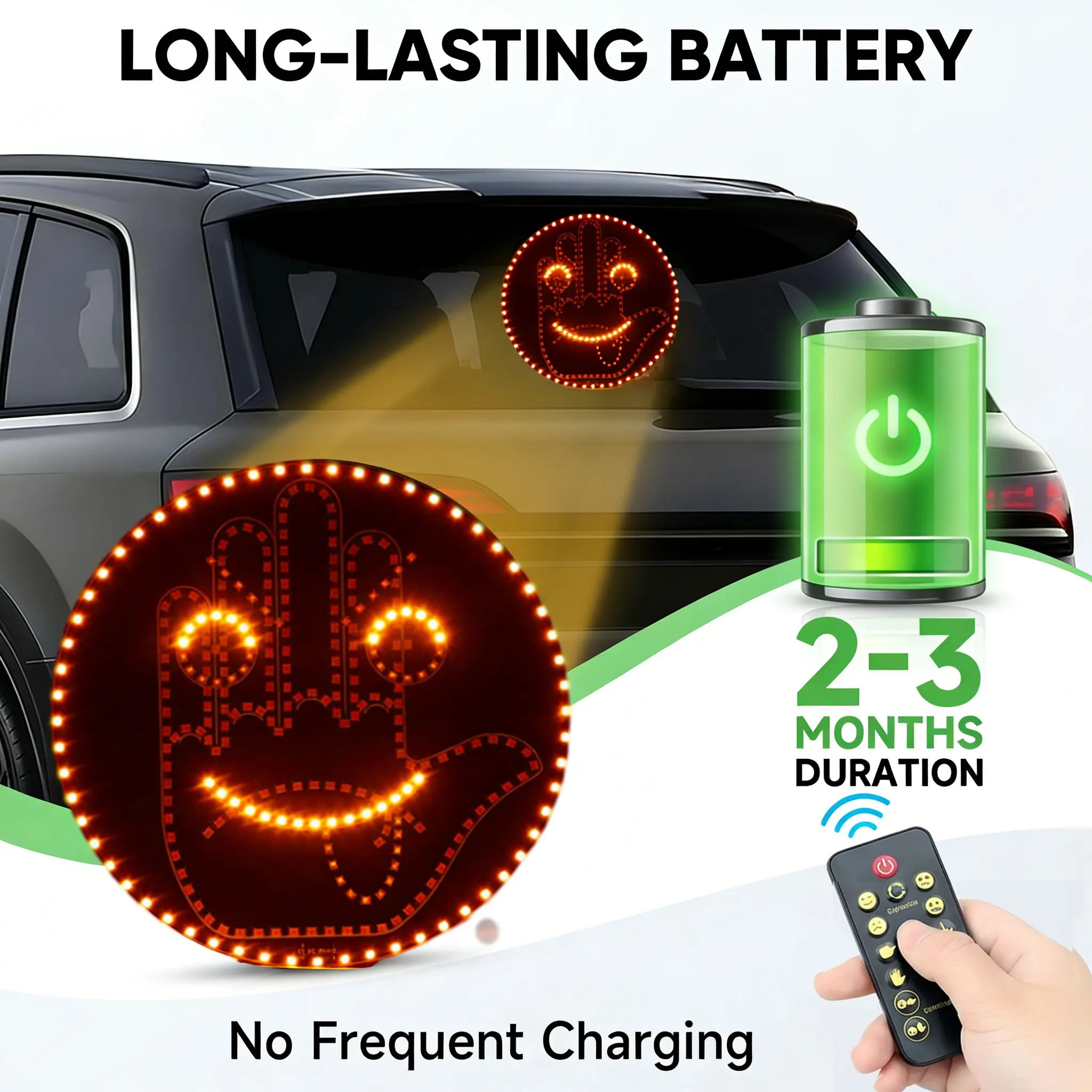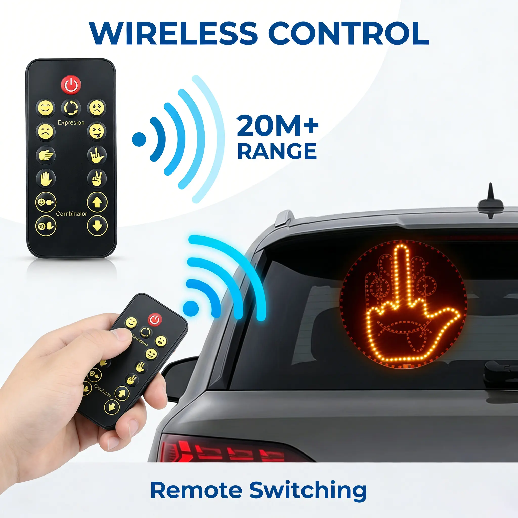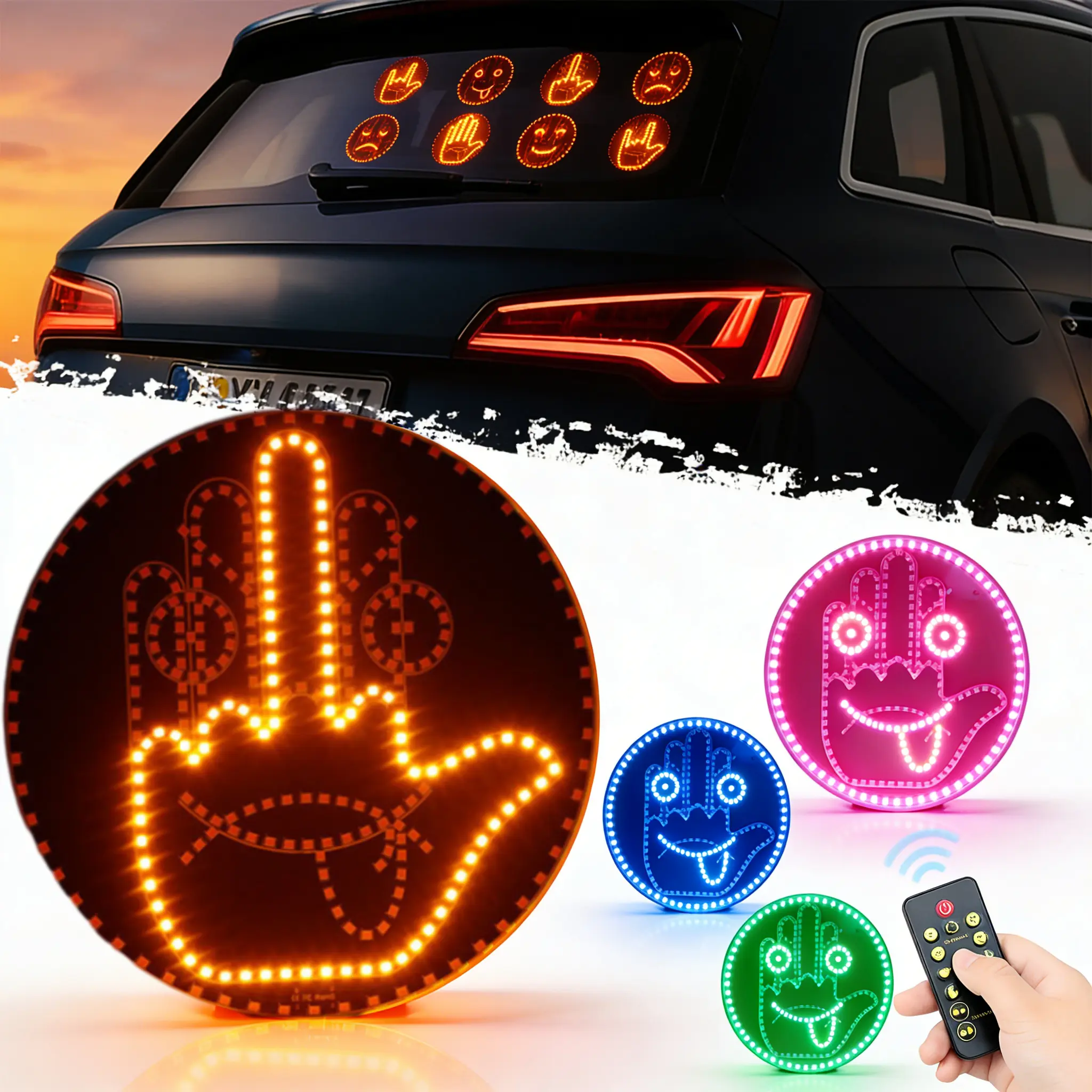 Add personality to your car with the LED Car Window Gesture Light. This fun accessory lets you express your mood playfully. Attach it to your car window and enjoy bright, visible LED lights. Perfect for daily use or as a unique gift. Make every drive more fun! 🌟