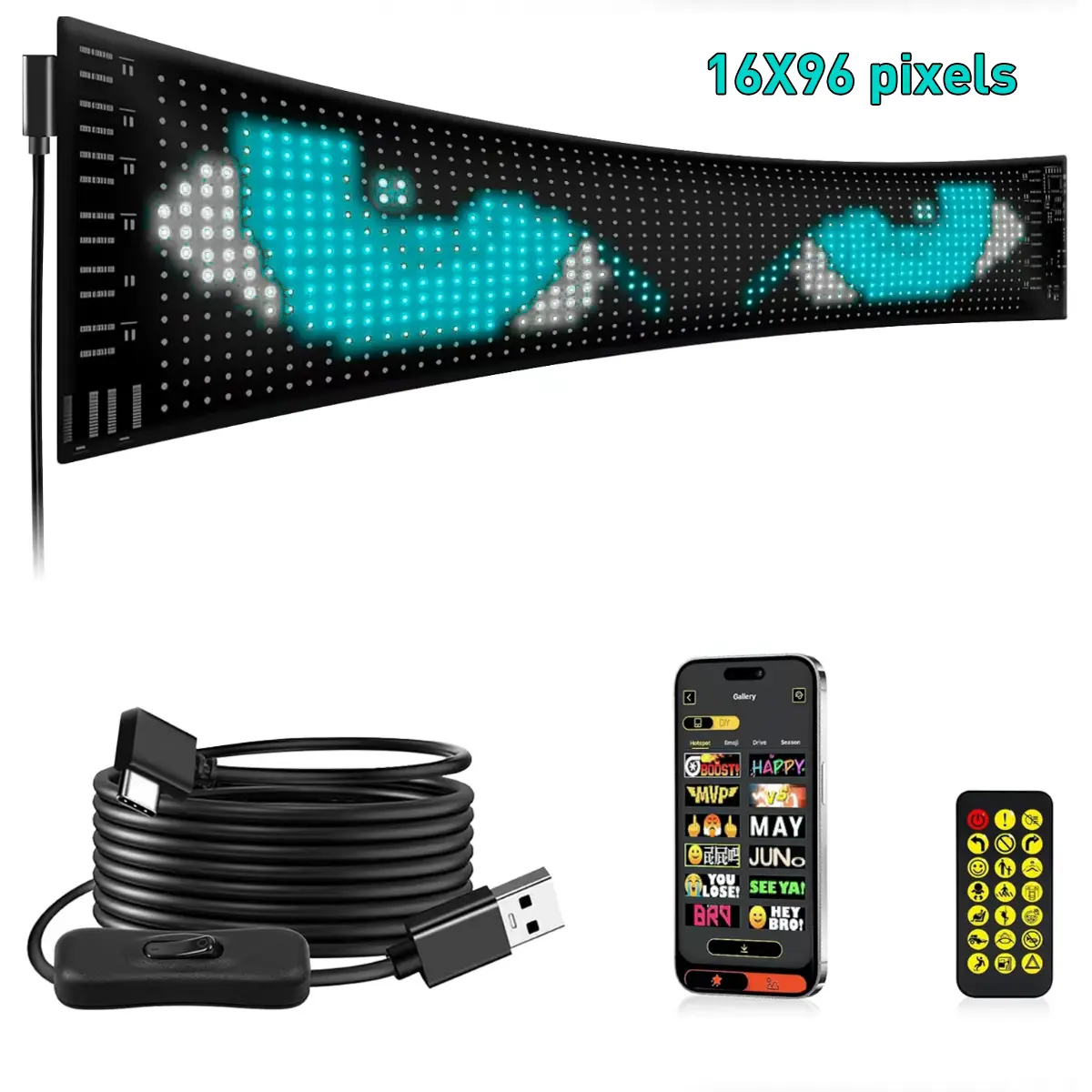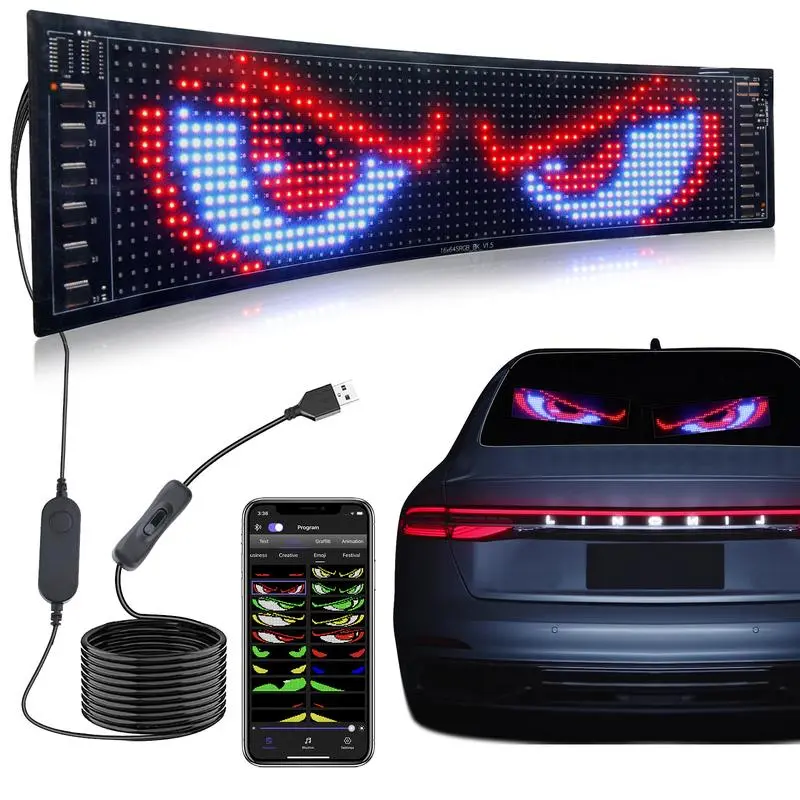 LED Car Sign Programmable Matrix Panel FPCB Flexible Screen Display APP Control for Cars Shops Bars Parties Festivals Customizable Message Scrolling Bright Advertising - Vehicle