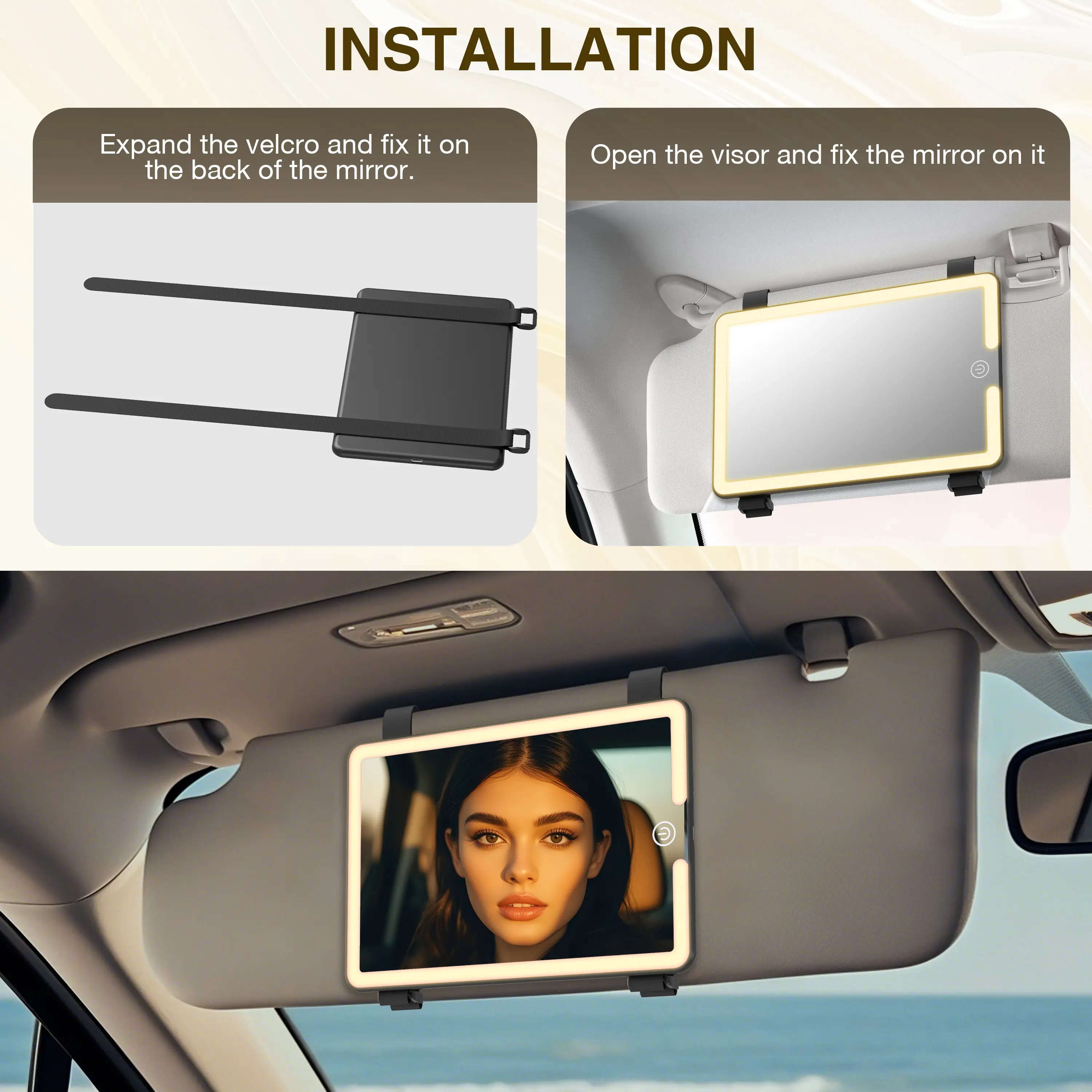 it’s easy to put on too and it comes w a charger😍😍 #makeupmirrorlights #girlythings #sunvisor #cuteaccessories