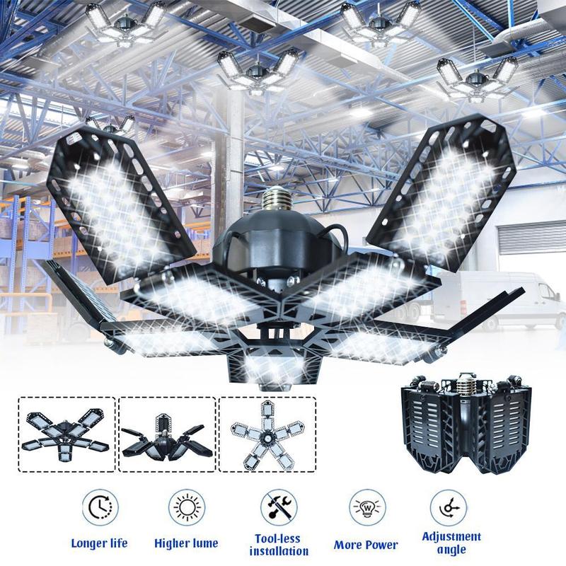 Adjustable LED Ceiling Light Fixtures. Unique deformative wide-angle ultra-bright garage light, 5 lighting panels can be adjusted 90 degrees, the lighting angle can be adjusted with 360° stable lighting in all directions.