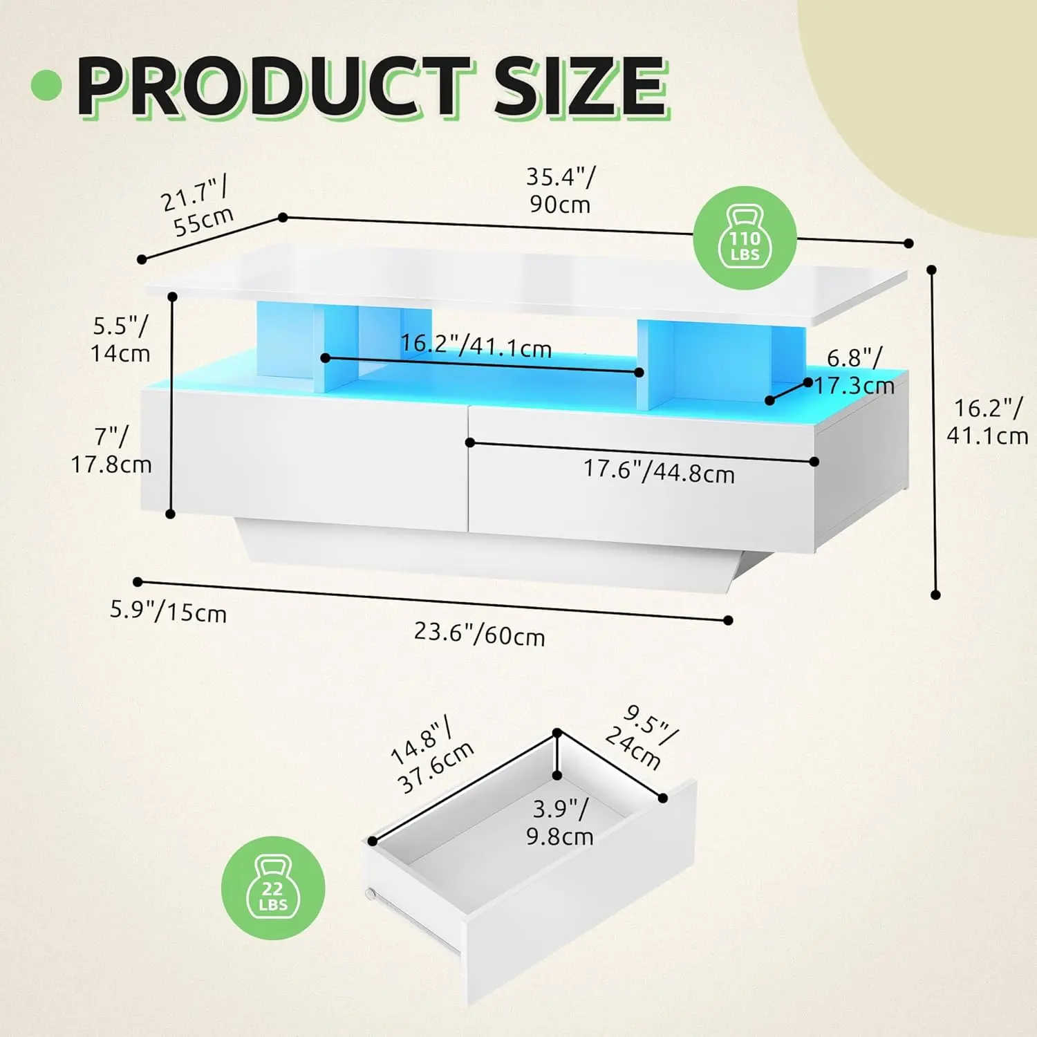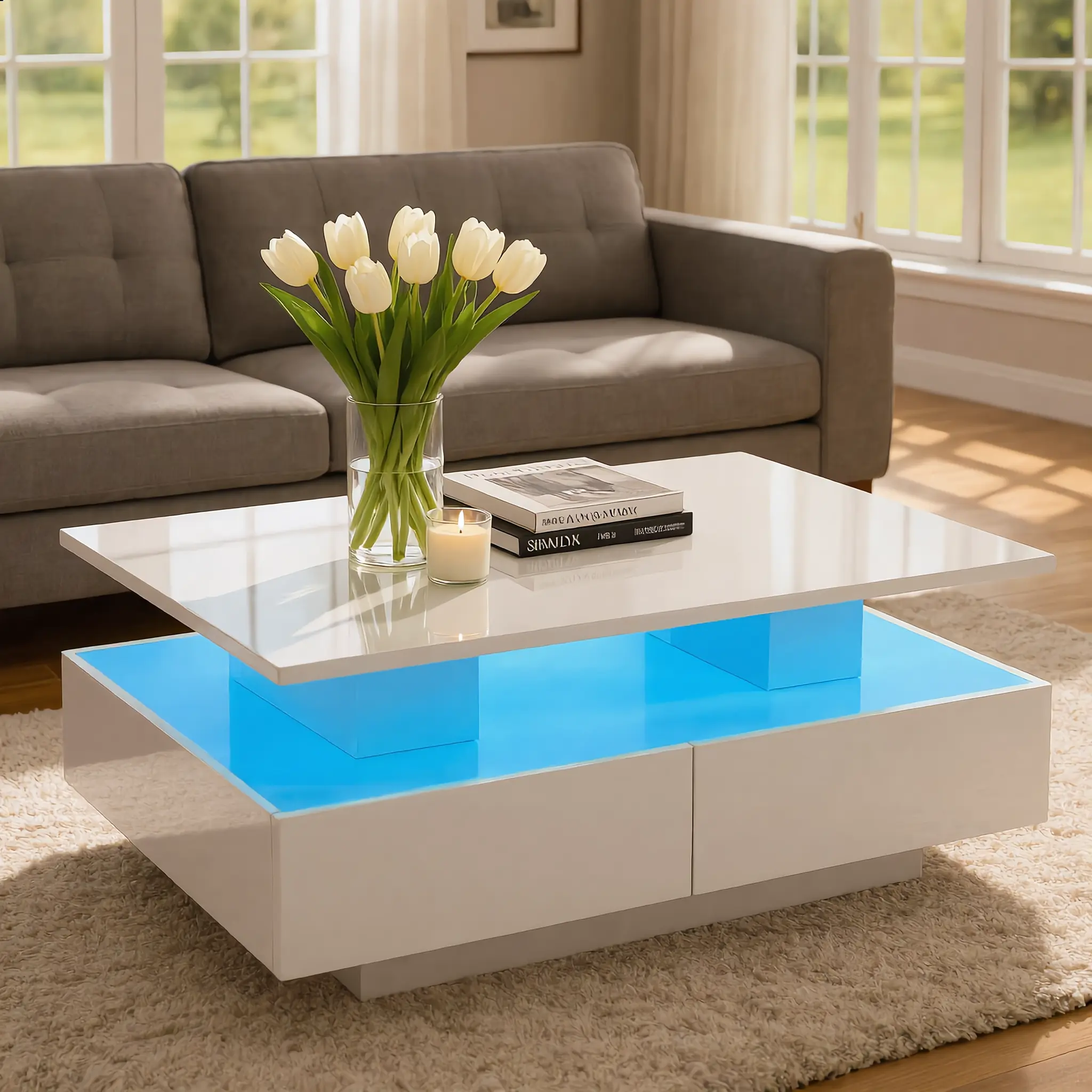 Sturdy Construction: Crafted with top-notch particle board, this storage coffee table with high gloss is sturdy and easy to clean. Plus, the durable drawers slide smoothly and quietly. Enjoy years of durability and style
